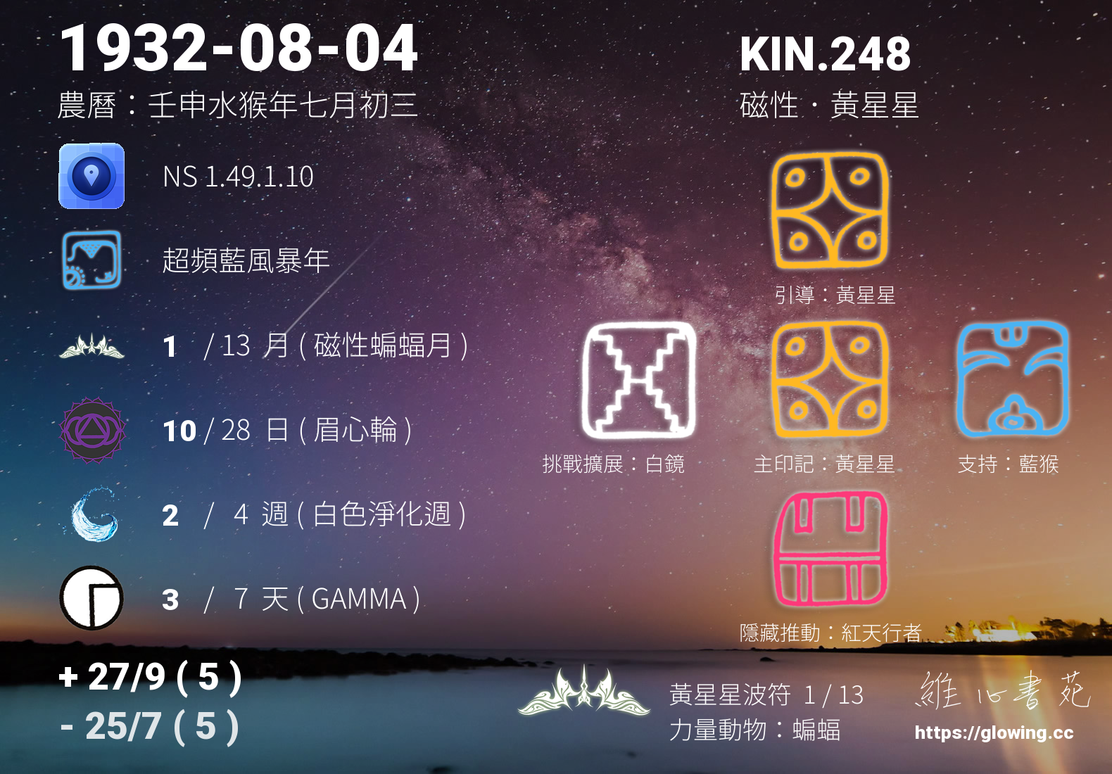 KIN.248 位於 黃星星波符 13 天中的第 1 天,銀河音階為調性 1