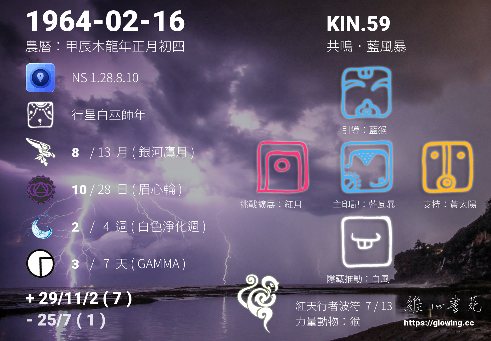 我們可以稱 KIN 59 為 【共鳴藍風暴】 、 【共鳴的藍風暴】 、 【紅天行者波符 之 共鳴藍風暴】 也可以是 【共鳴藍風暴.紅天行者波符】 ,你比較喜歡哪一個稱號呢?