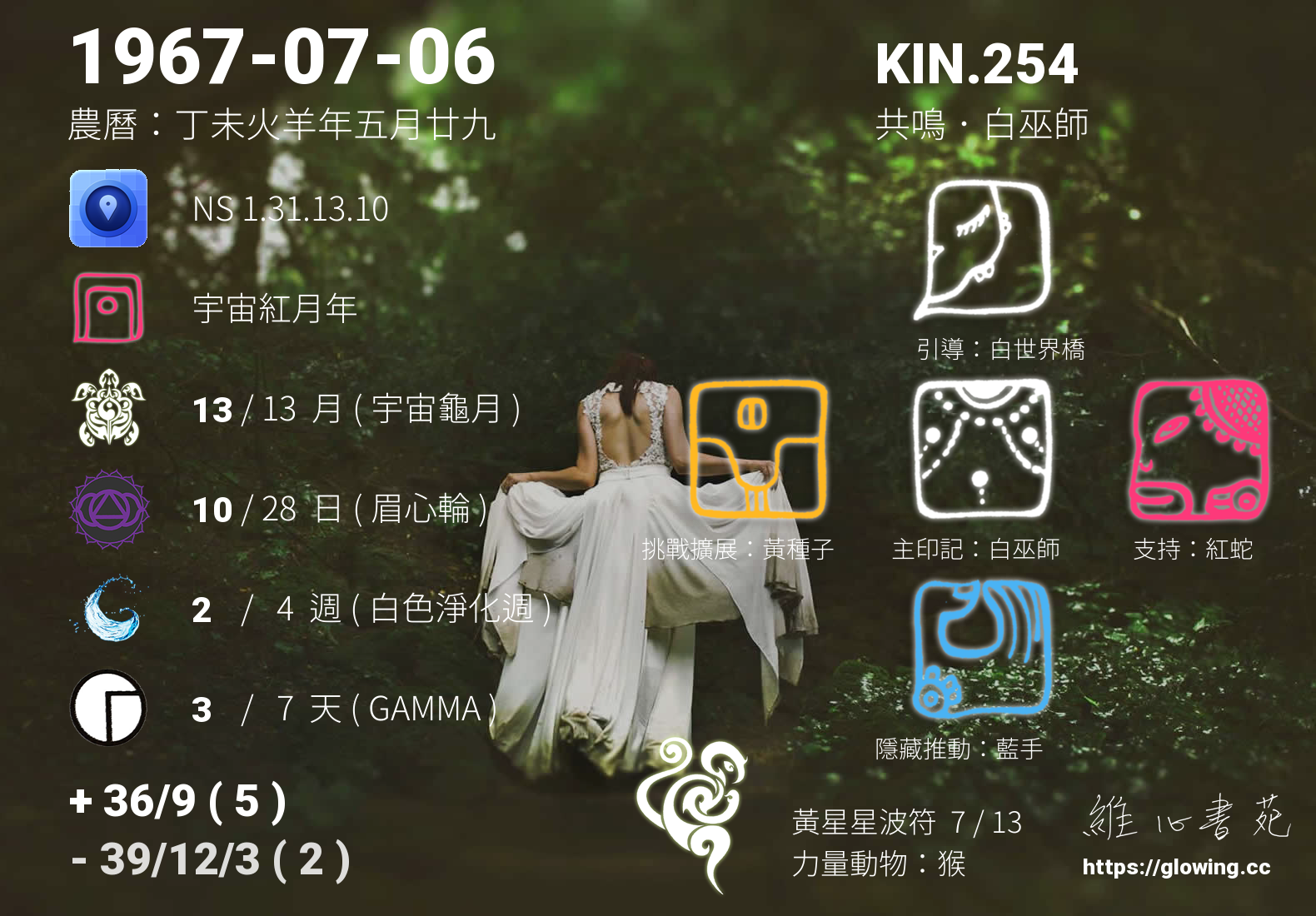 我們可以稱 KIN 254 為 【共鳴白巫師】 、 【共鳴的白巫師】 、 【黃星星波符 之 共鳴白巫師】 也可以是 【共鳴白巫師.黃星星波符】 ,你比較喜歡哪一個稱號呢?