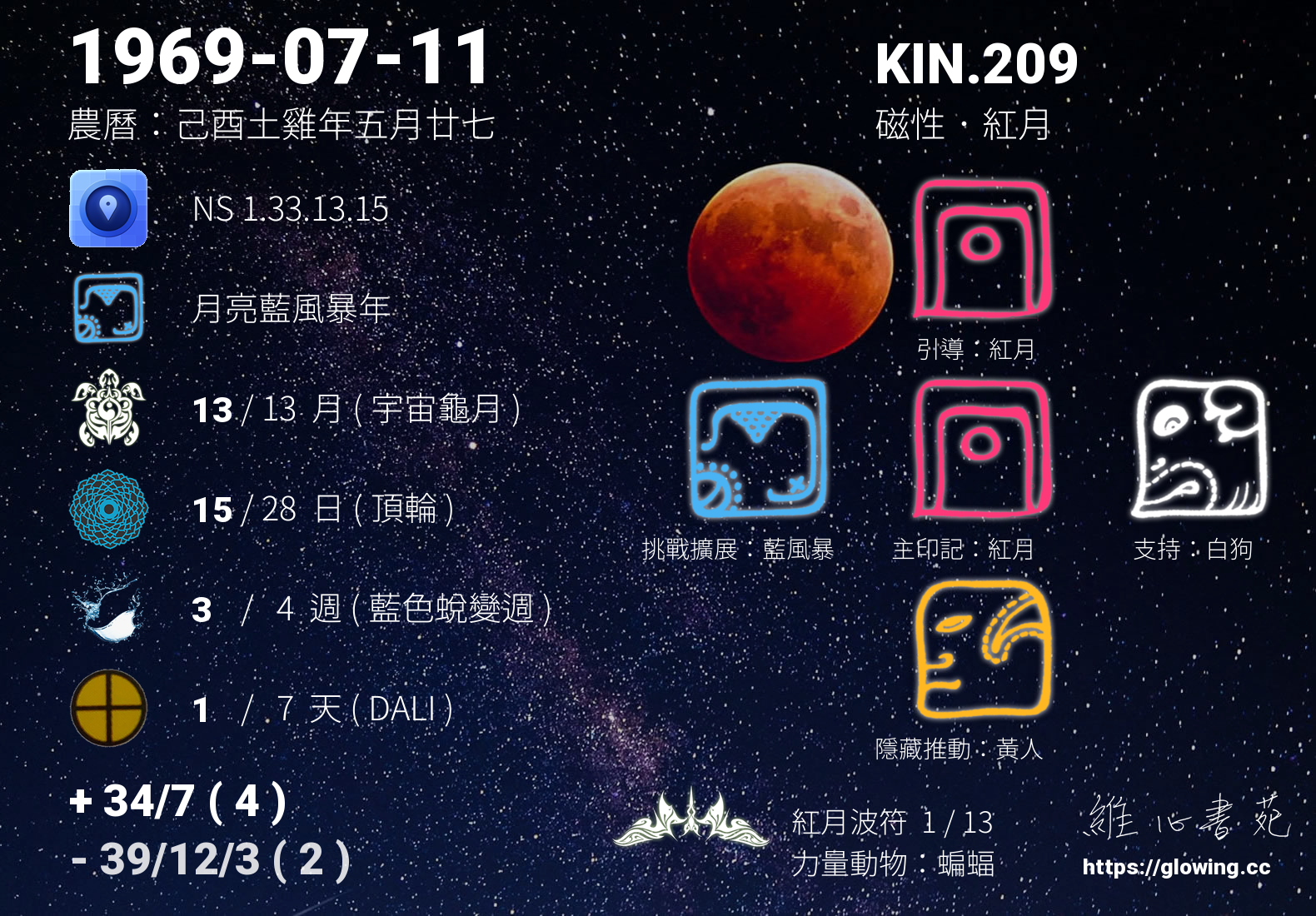 KIN.209 位於 紅月波符 13 天中的第 1 天,銀河音階為調性 1