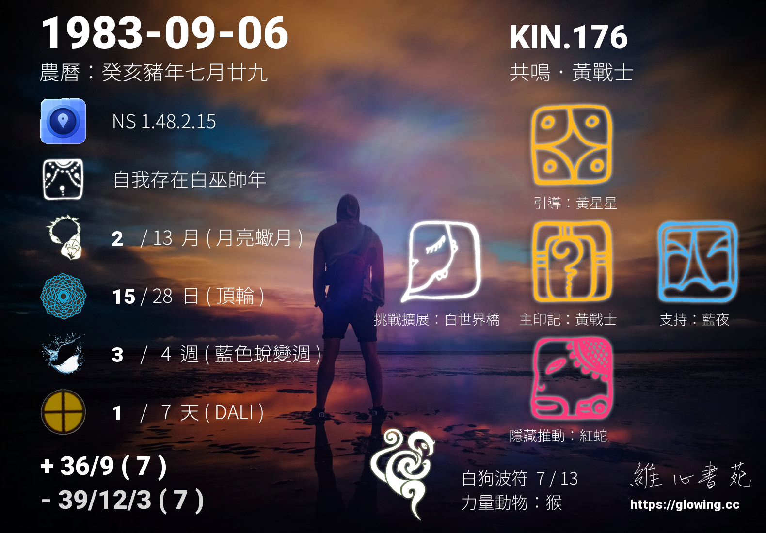 我們可以稱 KIN 176 為 【共鳴黃戰士】 、 【共鳴的黃戰士】 、 【白狗波符 之 共鳴黃戰士】 也可以是 【共鳴黃戰士.白狗波符】 ,你比較喜歡哪一個稱號呢?