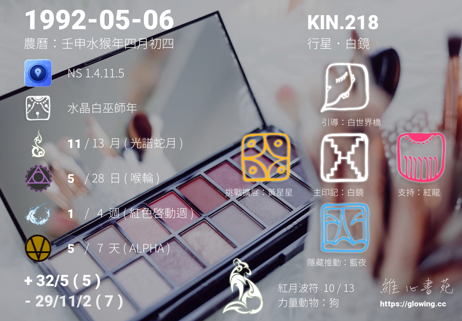 我們可以稱 KIN 218 為 【行星白鏡】 、 【行星的白鏡】 、 【紅月波符 之 行星白鏡】 也可以是 【行星白鏡.紅月波符】 ,你比較喜歡哪一個稱號呢?