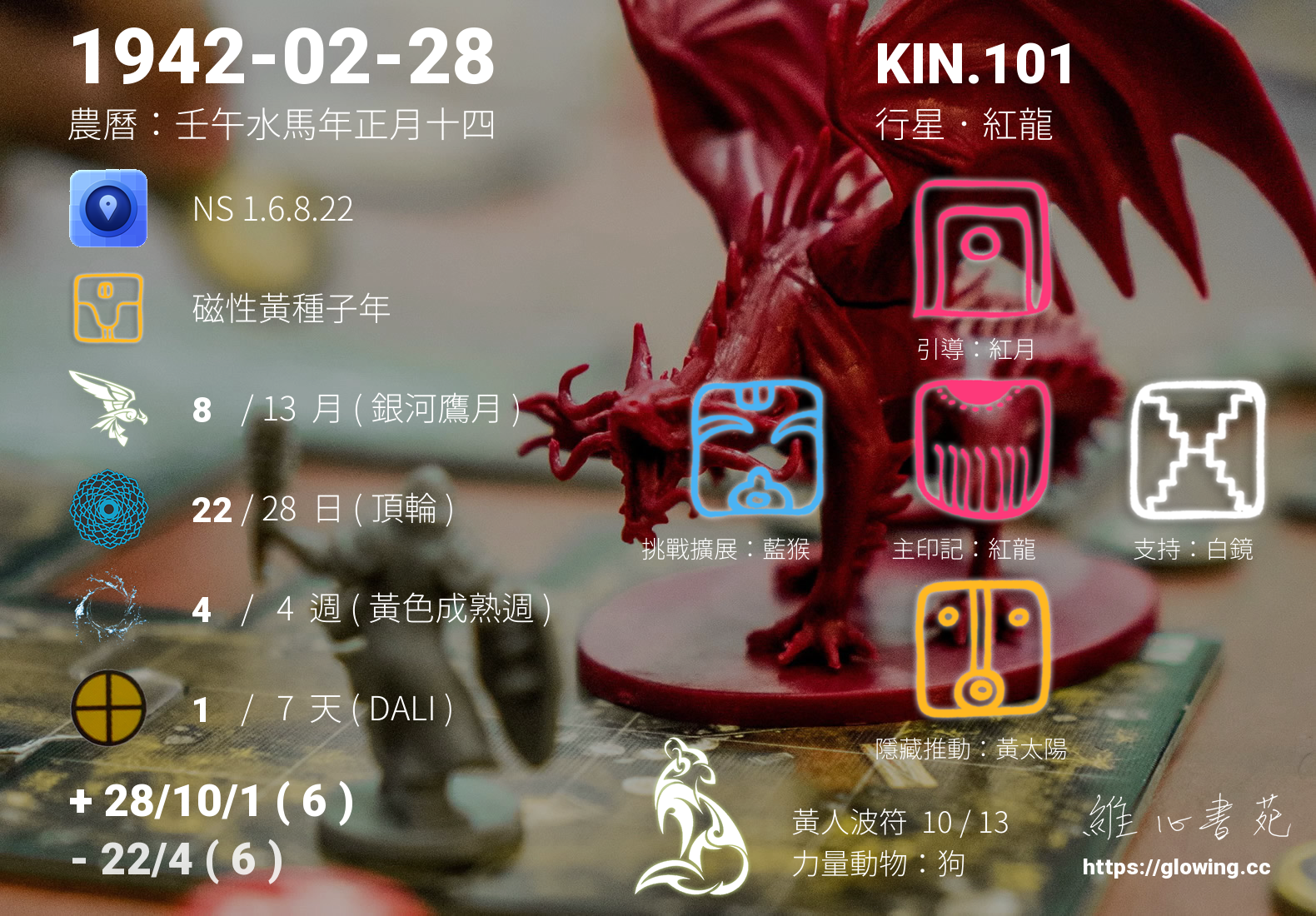 我們可以稱 KIN 101 為 【行星紅龍】 、 【行星的紅龍】 、 【黃人波符 之 行星紅龍】 也可以是 【行星紅龍.黃人波符】 ,你比較喜歡哪一個稱號呢?