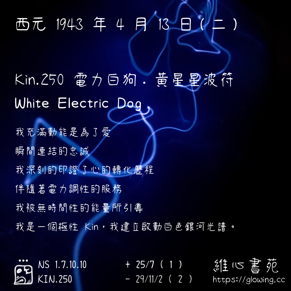 電力白狗的 KIN260 肯定句是:【我能夠用我獨特自在的方式去展現愛的流動】