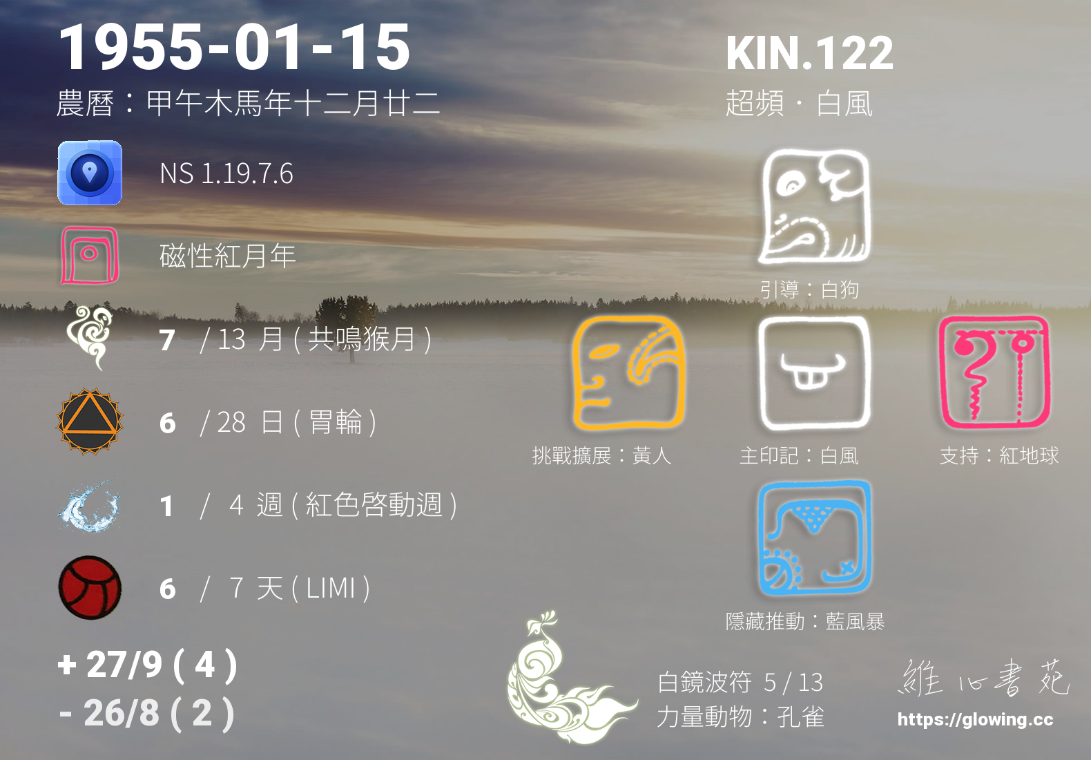 我們可以稱 KIN 122 為 【超頻白風】 、 【超頻的白風】 、 【白鏡波符 之 超頻白風】 也可以是 【超頻白風.白鏡波符】 ,你比較喜歡哪一個稱號呢?