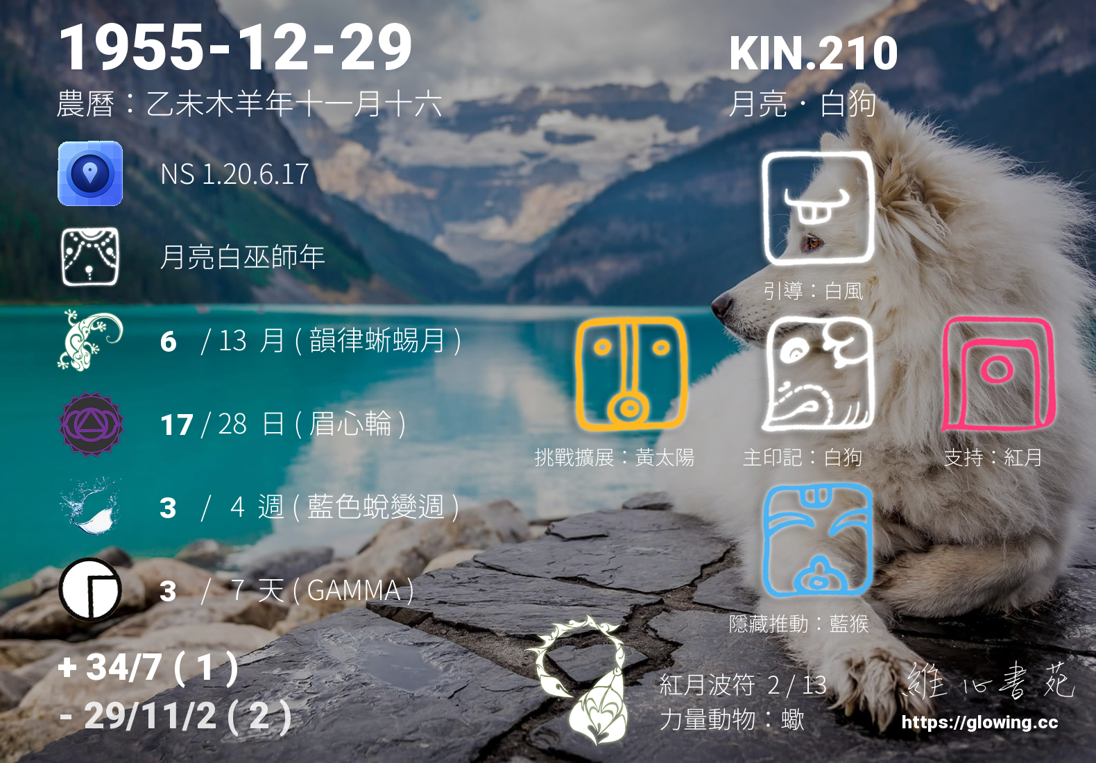 我們可以稱 KIN 210 為 【月亮白狗】 、 【月亮的白狗】 、 【紅月波符 之 月亮白狗】 也可以是 【月亮白狗.紅月波符】 ,你比較喜歡哪一個稱號呢?