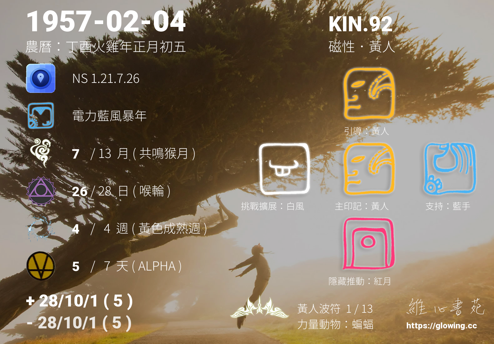 KIN.92 位於 黃人波符 13 天中的第 1 天,銀河音階為調性 1