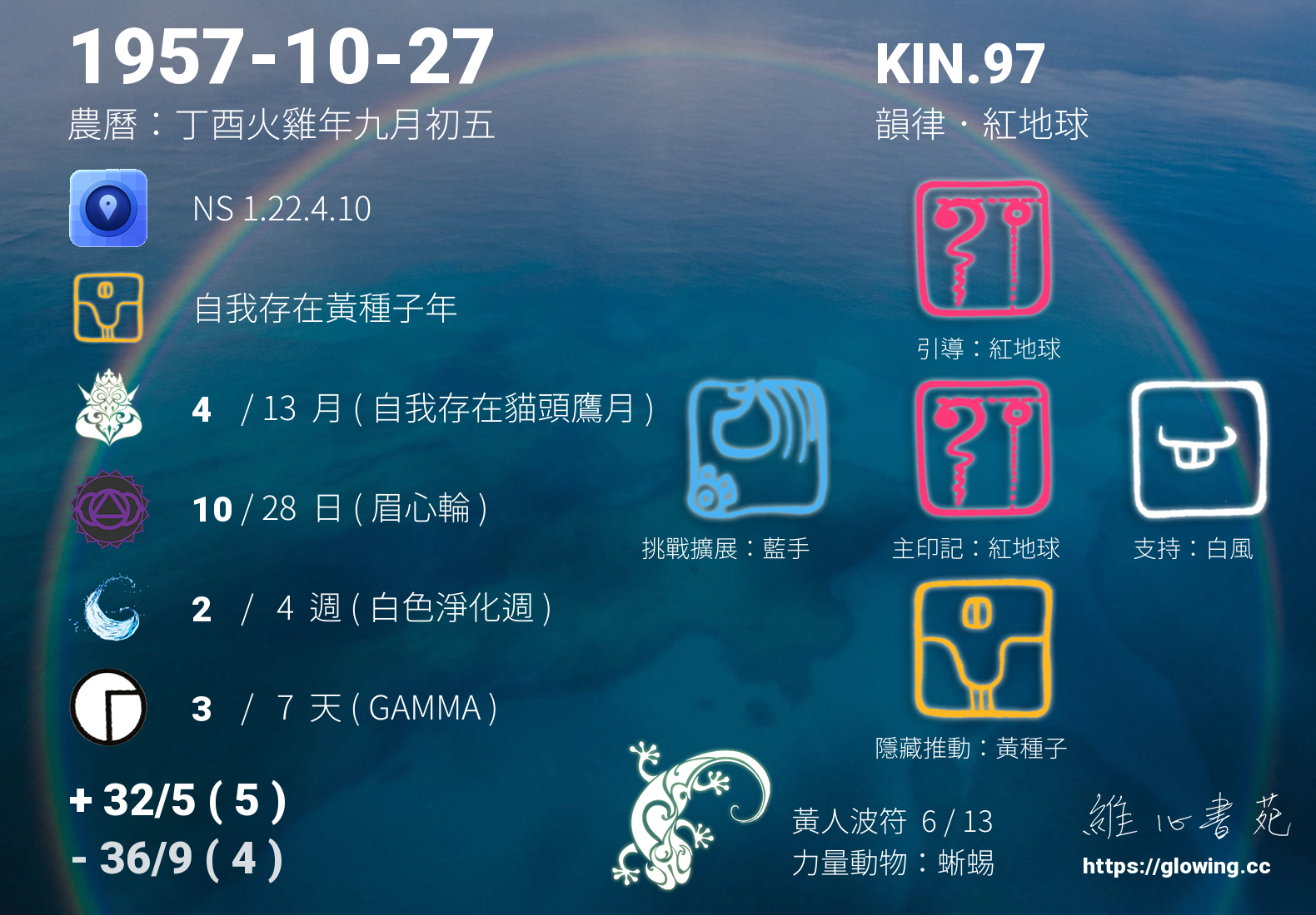 KIN.97 位於 黃人波符 13 天中的第 6 天,銀河音階為調性 6