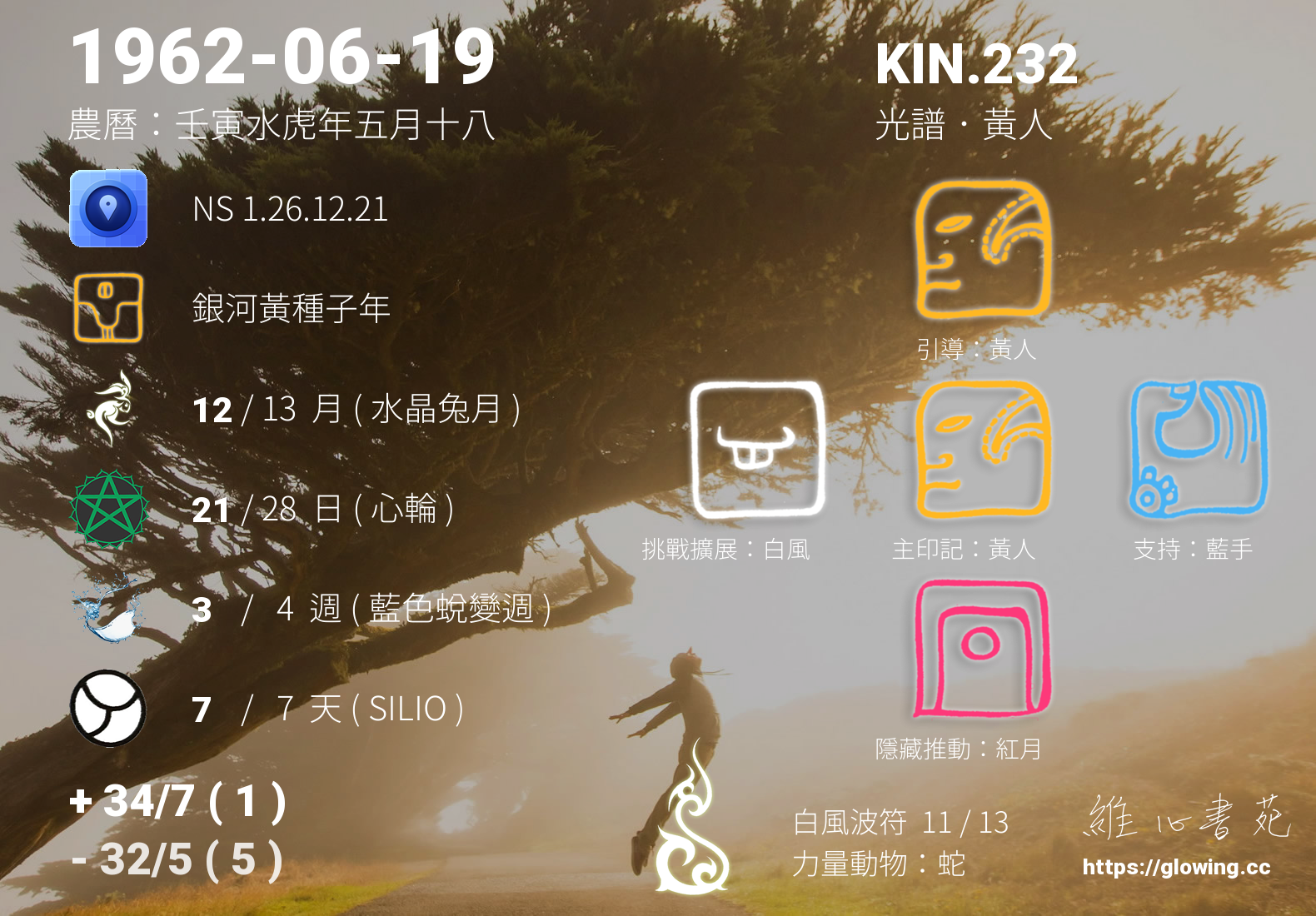 黃人的引導依據KIN的調性不同會有五種可能性,KIN.232的引導圖騰是黃人 , 黃人引導著我們崇尚智慧,探求內心的平靜能量,在一次次更深入看見自己內在的過程,我們能夠更清楚,所有的連結無須外求,我與內在的連結越緊密,生命將越加的繽紛。