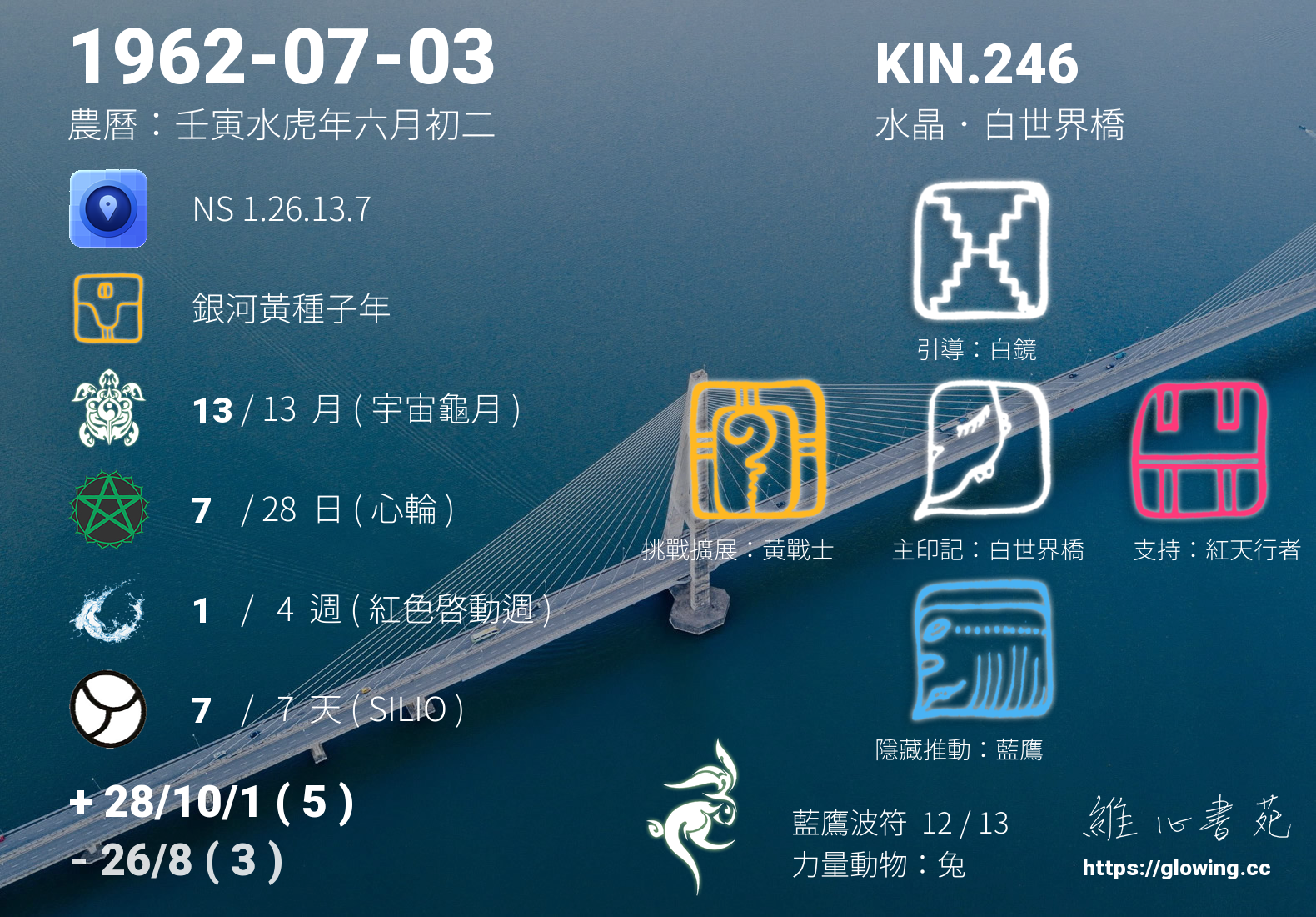 我們可以稱 KIN 246 為 【水晶白世界橋】 、 【水晶的白世界橋】 、 【藍鷹波符 之 水晶白世界橋】 也可以是 【水晶白世界橋.藍鷹波符】 ,你比較喜歡哪一個稱號呢?