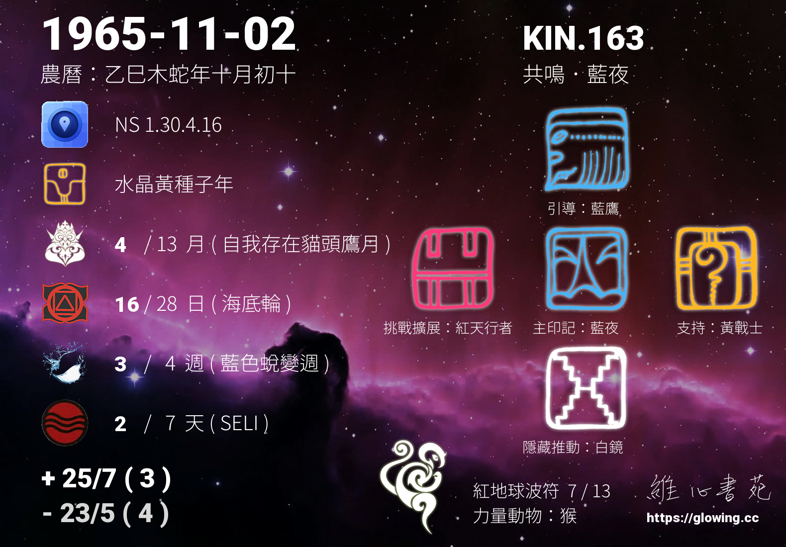 - PSI(行星記憶資料庫):KIN.67 月亮 藍手