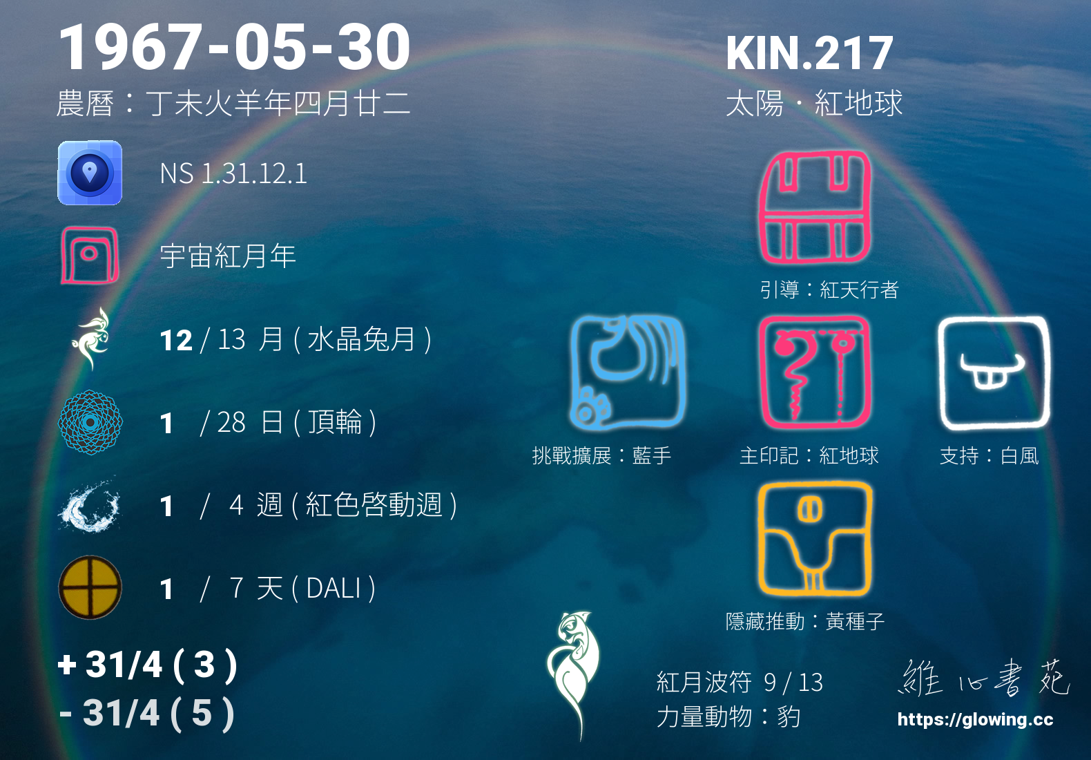我們可以稱 KIN 217 為 【太陽紅地球】 、 【太陽的紅地球】 、 【紅月波符 之 太陽紅地球】 也可以是 【太陽紅地球.紅月波符】 ,你比較喜歡哪一個稱號呢?