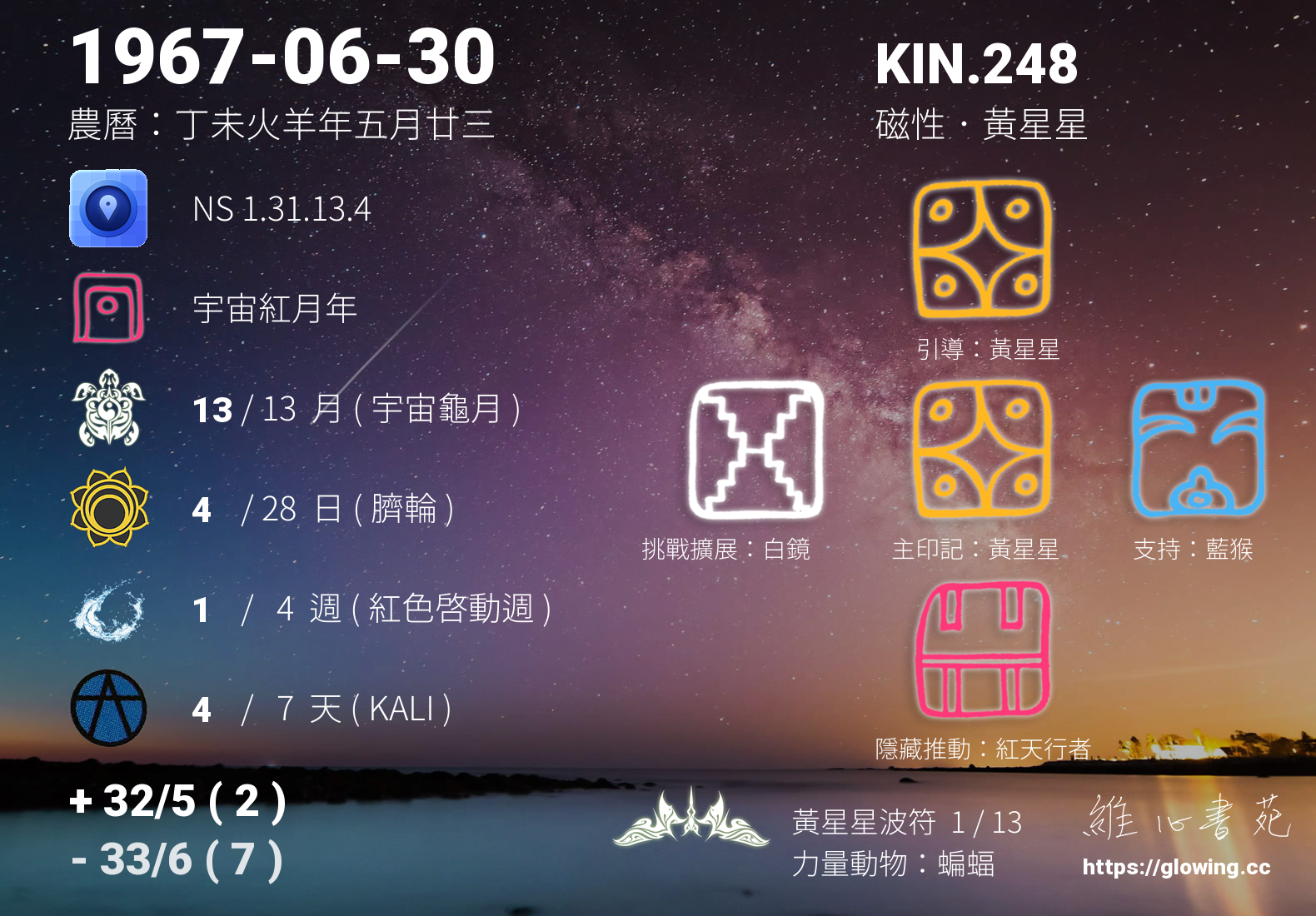 我們可以稱 KIN 248 為 【磁性黃星星】 、 【磁性的黃星星】 、 【黃星星波符 之 磁性黃星星】 也可以是 【磁性黃星星.黃星星波符】 ,你比較喜歡哪一個稱號呢?