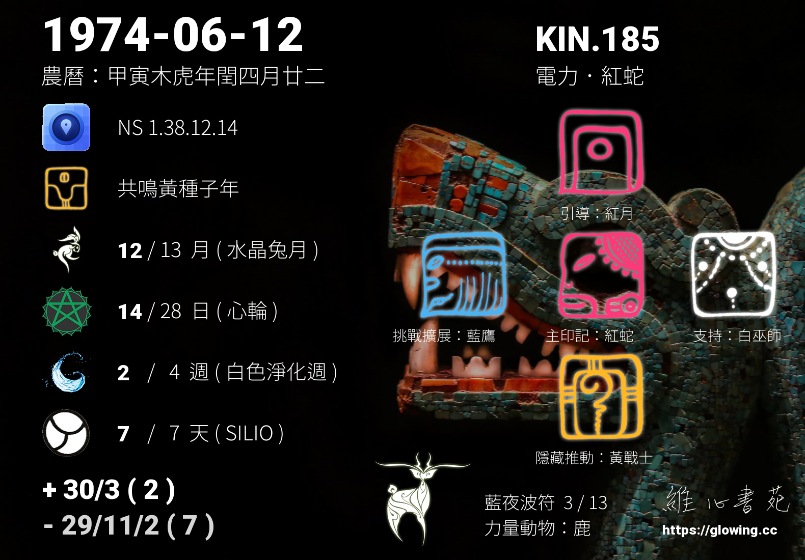 我們可以稱 KIN 185 為 【電力紅蛇】 、 【電力的紅蛇】 、 【藍夜波符 之 電力紅蛇】 也可以是 【電力紅蛇.藍夜波符】 ,你比較喜歡哪一個稱號呢?