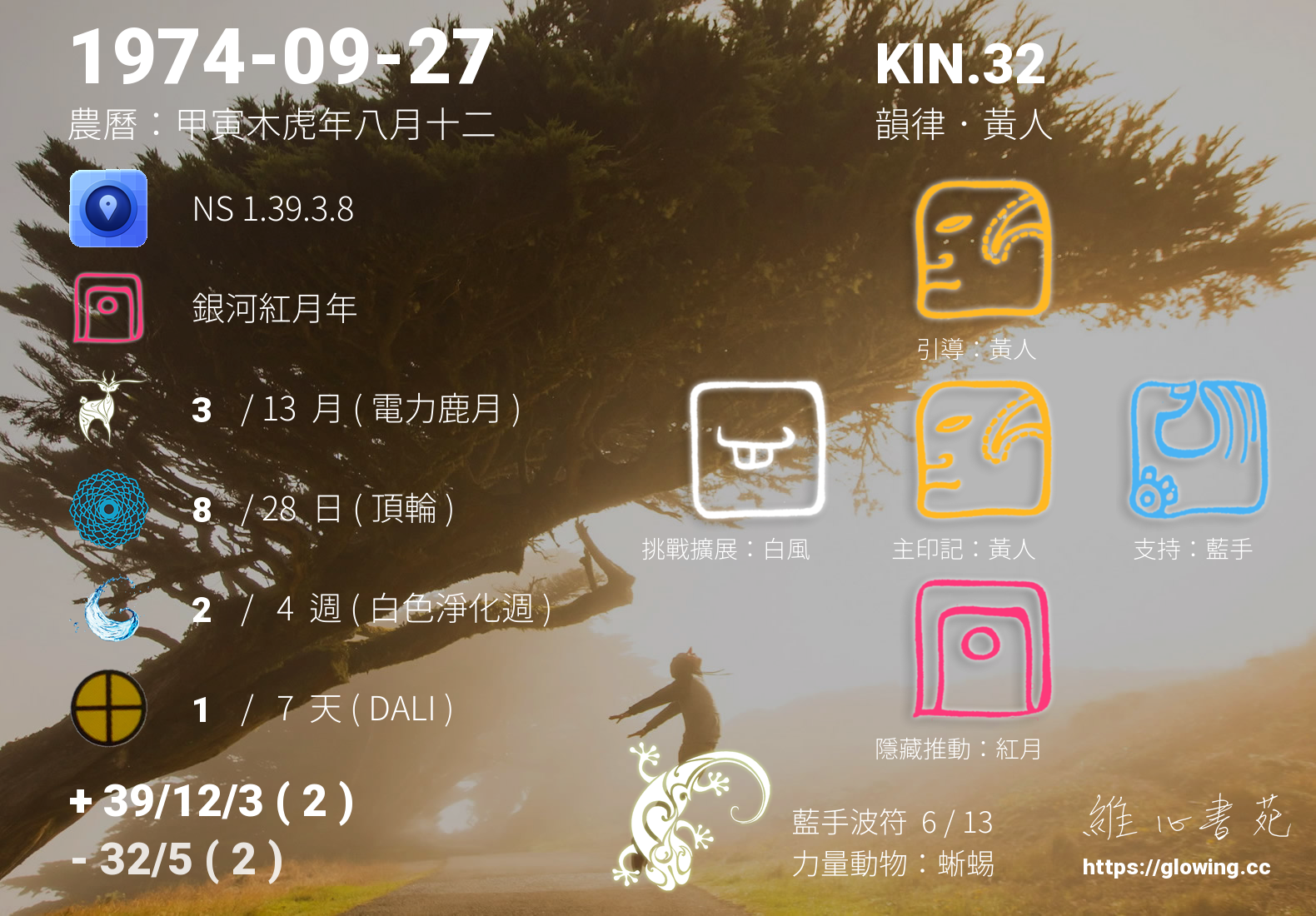 黃人的引導依據KIN的調性不同會有五種可能性,KIN.32的引導圖騰是黃人 , 黃人引導著我們崇尚智慧,探求內心的平靜能量,在一次次更深入看見自己內在的過程,我們能夠更清楚,所有的連結無須外求,我與內在的連結越緊密,生命將越加的繽紛。