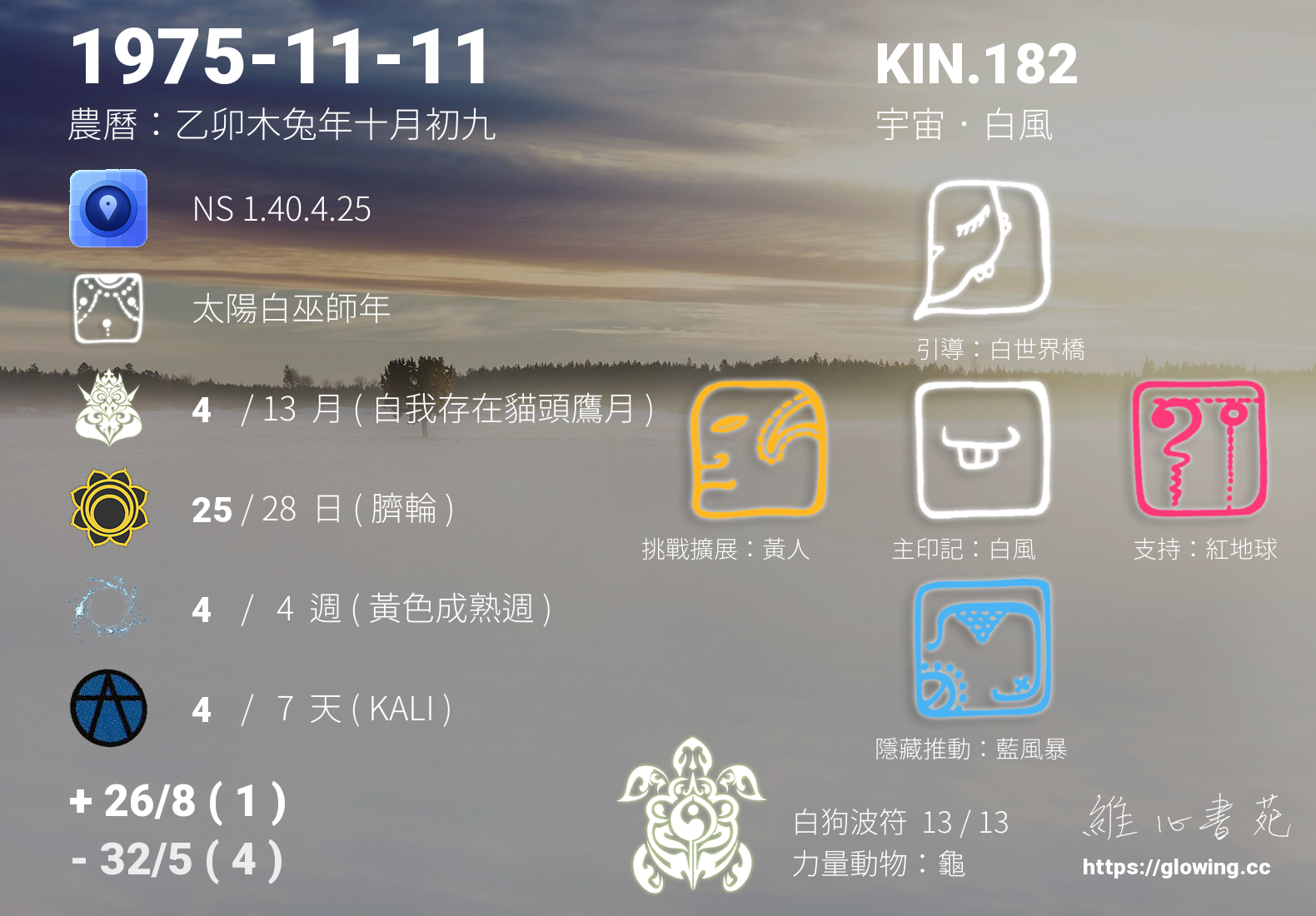 我們可以稱 KIN 182 為 【宇宙白風】 、 【宇宙的白風】 、 【白狗波符 之 宇宙白風】 也可以是 【宇宙白風.白狗波符】 ,你比較喜歡哪一個稱號呢?