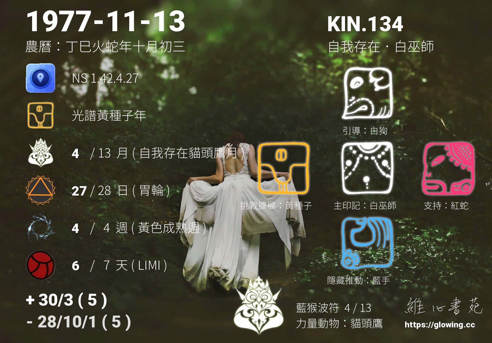 我們可以稱 KIN 134 為 【自我存在白巫師】 、 【自我存在的白巫師】 、 【藍猴波符 之 自我存在白巫師】 也可以是 【自我存在白巫師.藍猴波符】 ,你比較喜歡哪一個稱號呢?