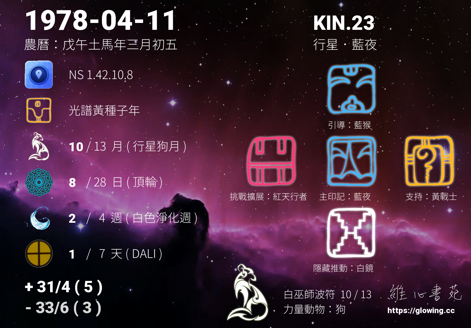 - PSI(行星記憶資料庫):KIN.187 超頻 藍手
