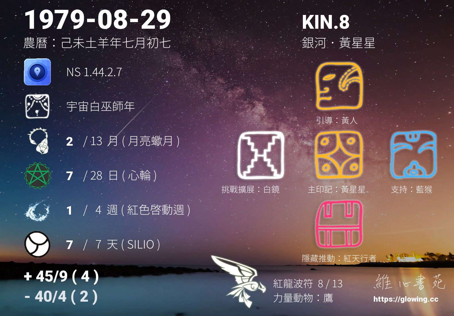 KIN.8 位於 紅龍波符 13 天中的第 8 天,銀河音階為調性 8