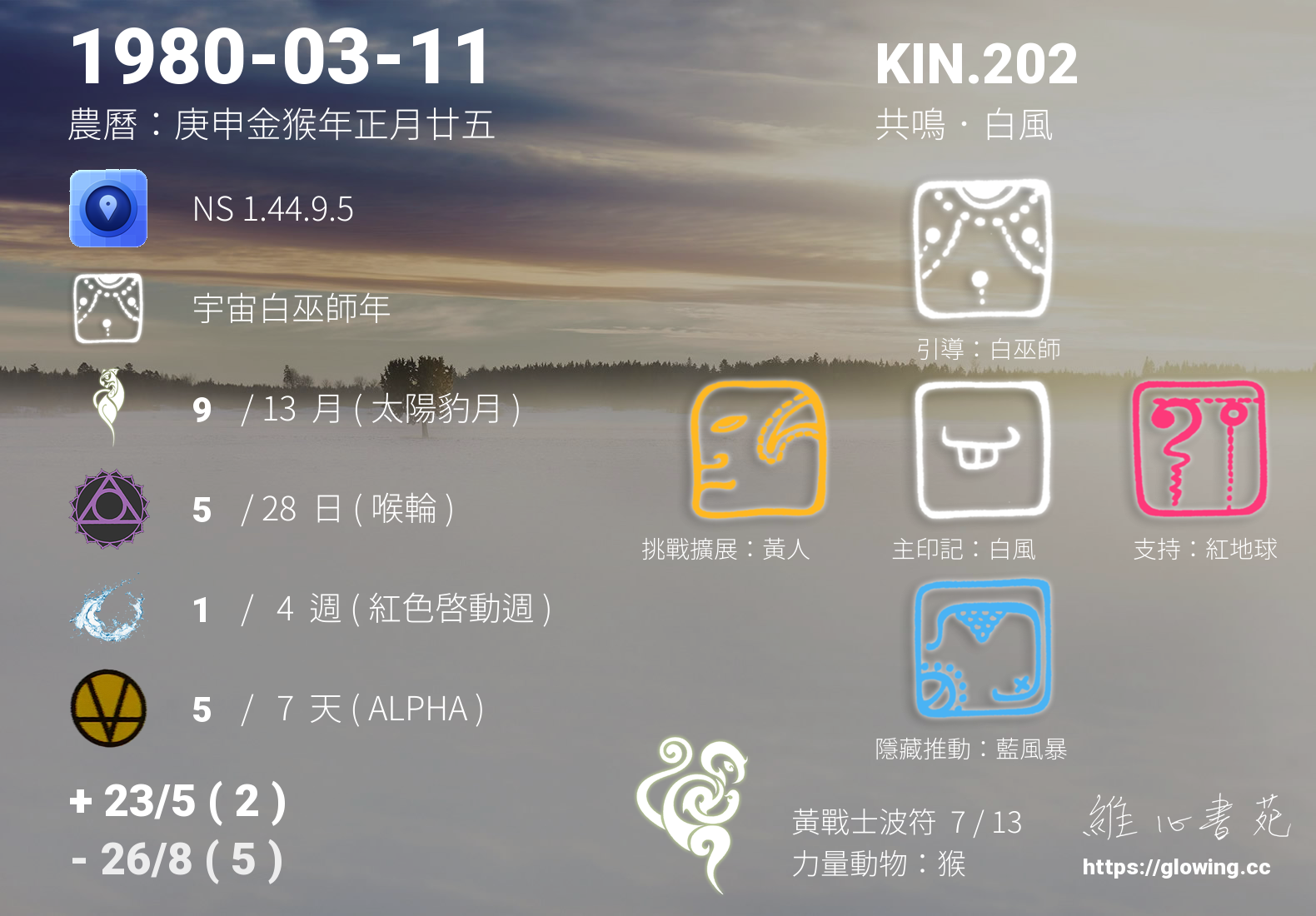 我們可以稱 KIN 202 為 【共鳴白風】 、 【共鳴的白風】 、 【黃戰士波符 之 共鳴白風】 也可以是 【共鳴白風.黃戰士波符】 ,你比較喜歡哪一個稱號呢?
