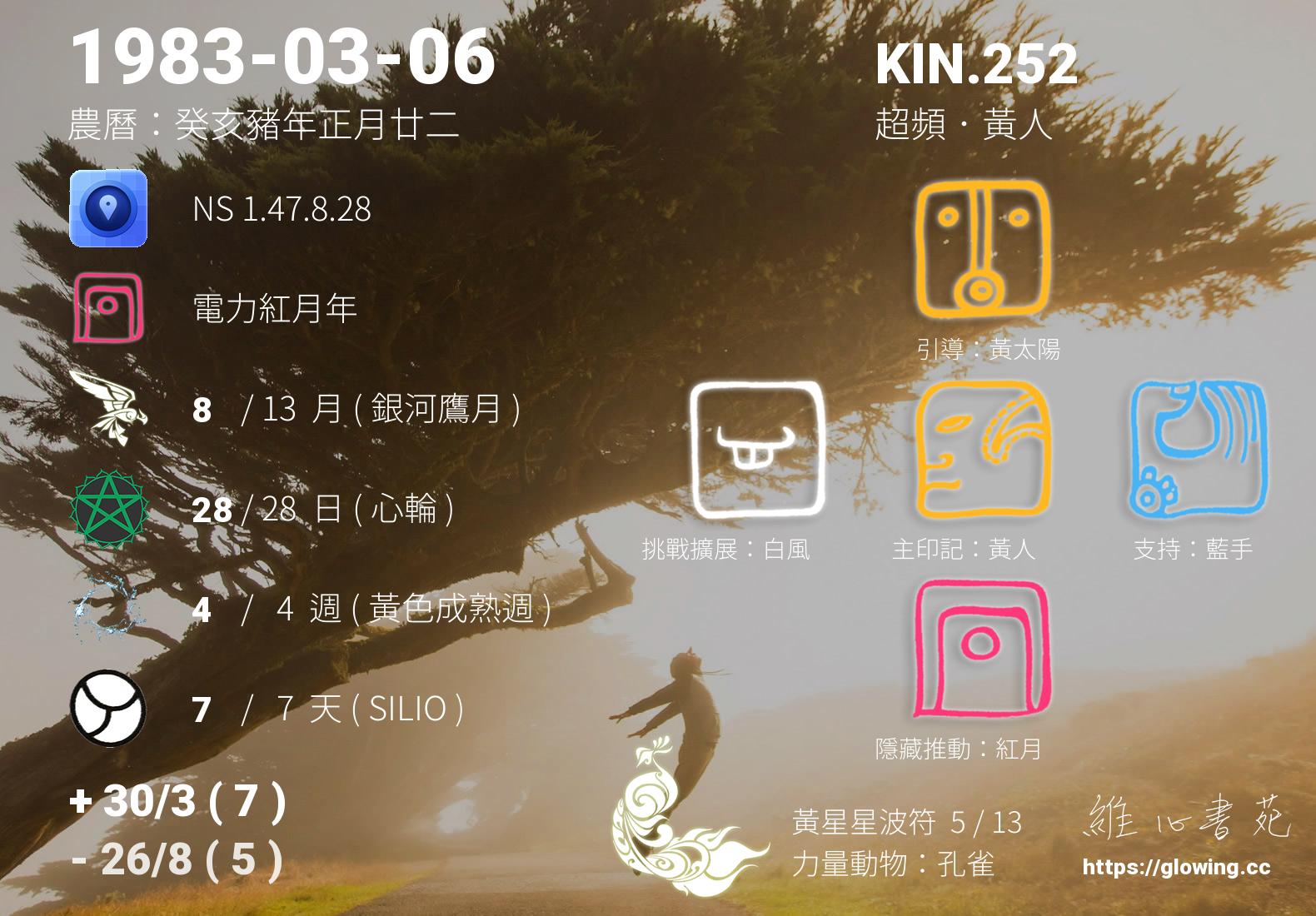 我們可以稱 KIN 252 為 【超頻黃人】 、 【超頻的黃人】 、 【黃星星波符 之 超頻黃人】 也可以是 【超頻黃人.黃星星波符】 ,你比較喜歡哪一個稱號呢?