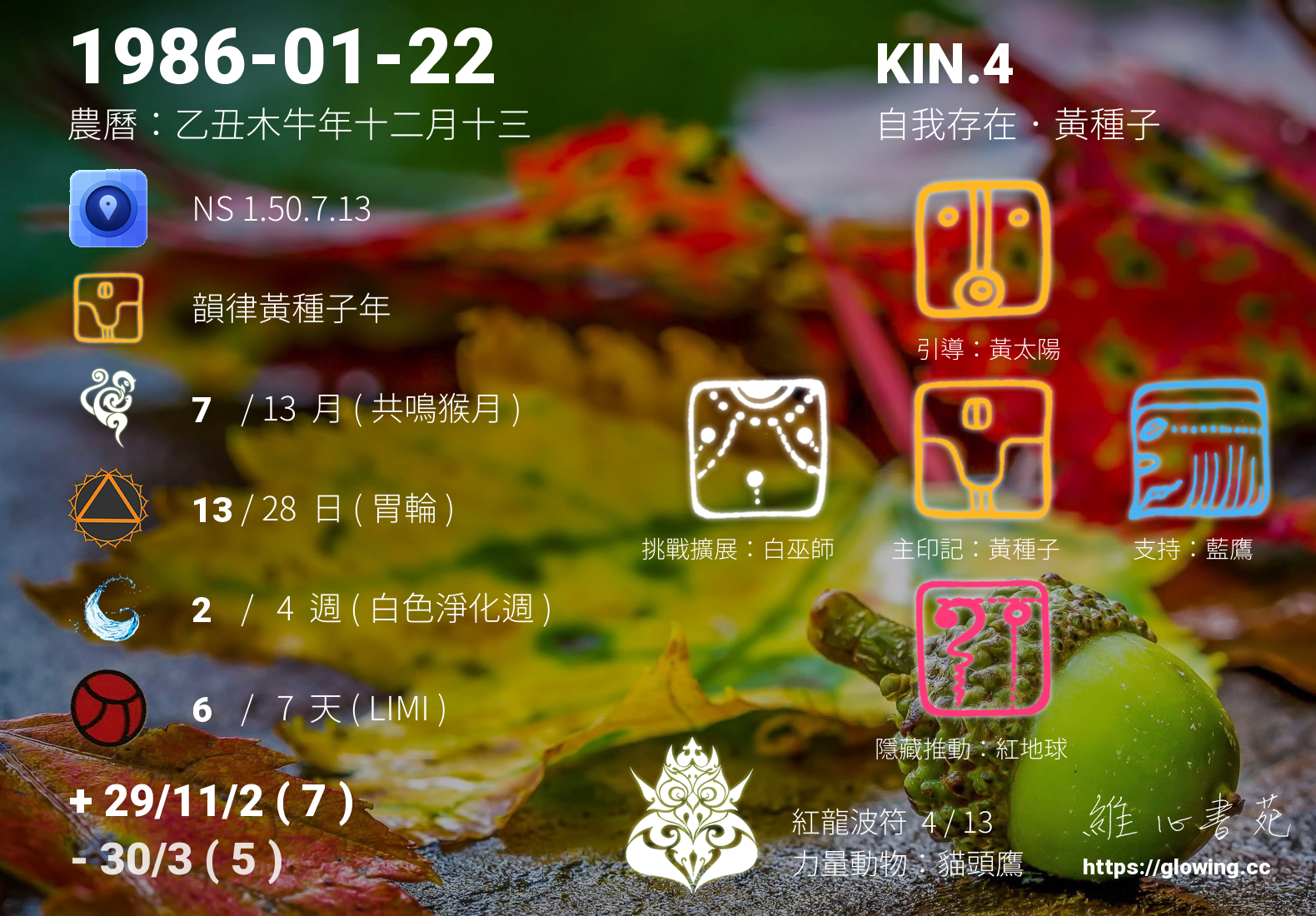 黃種子與白巫師相互為對方的挑戰擴展圖騰, 白巫師是黃種子的挑戰擴展,黃種子蘊藏著無限的希望未來,然而種子發芽茁壯需要時間,然而從黃種子的視角,白巫師的信手捻來快速成就,似乎少了點歷程的經歷體驗,然而所有的歷程不論快慢好壞,其實都會是滋養黃種子成長的所需養分。