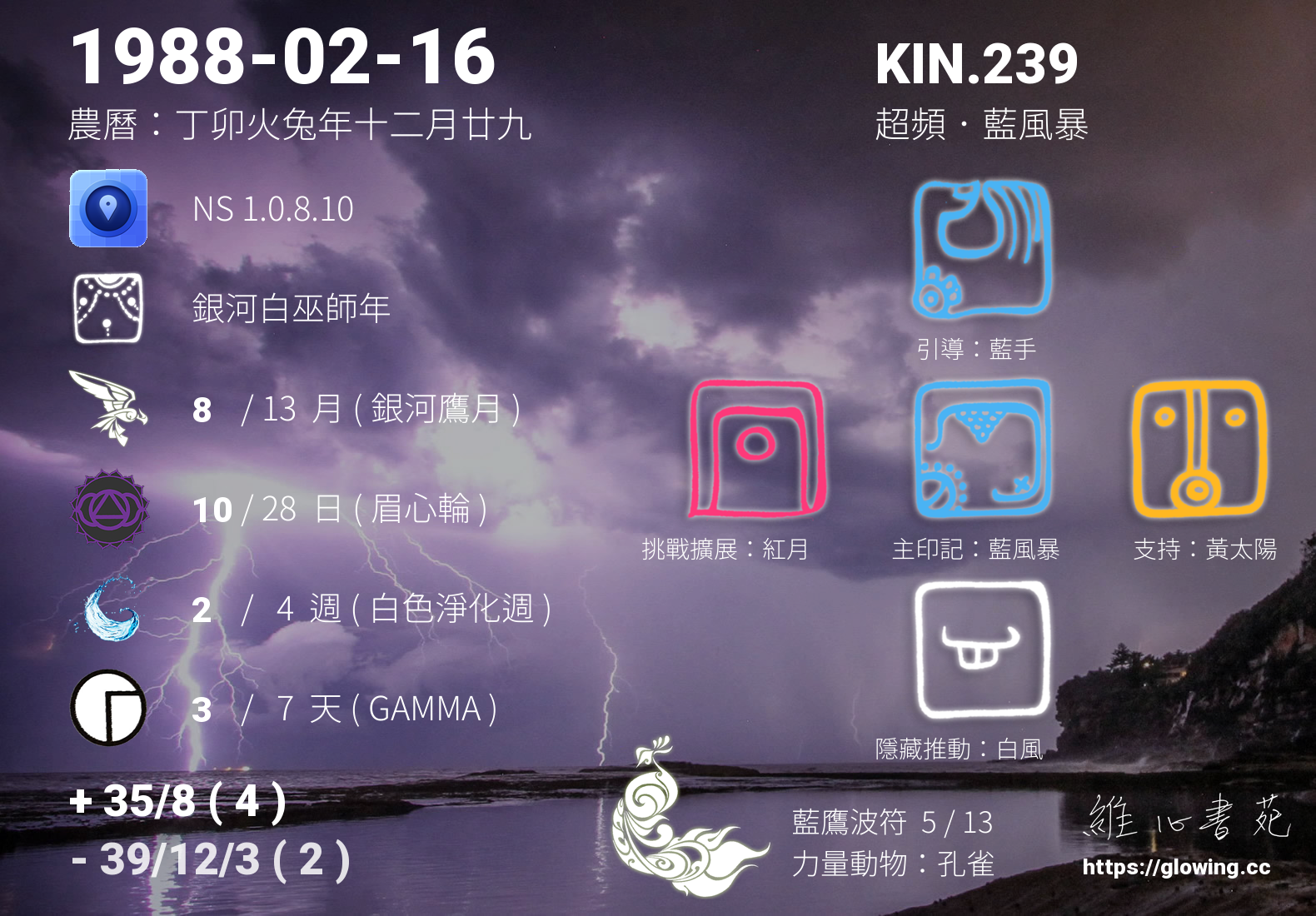我們可以稱 KIN 239 為 【超頻藍風暴】 、 【超頻的藍風暴】 、 【藍鷹波符 之 超頻藍風暴】 也可以是 【超頻藍風暴.藍鷹波符】 ,你比較喜歡哪一個稱號呢?