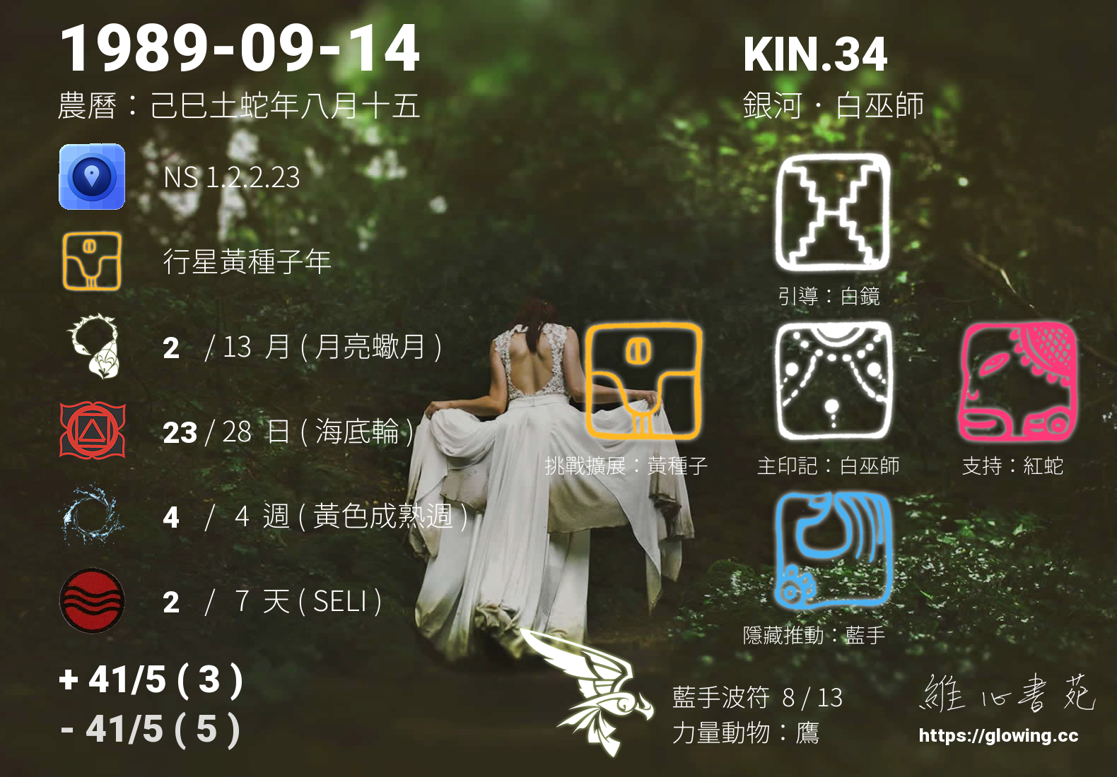 - PSI(行星記憶資料庫):KIN.222 磁性 白風