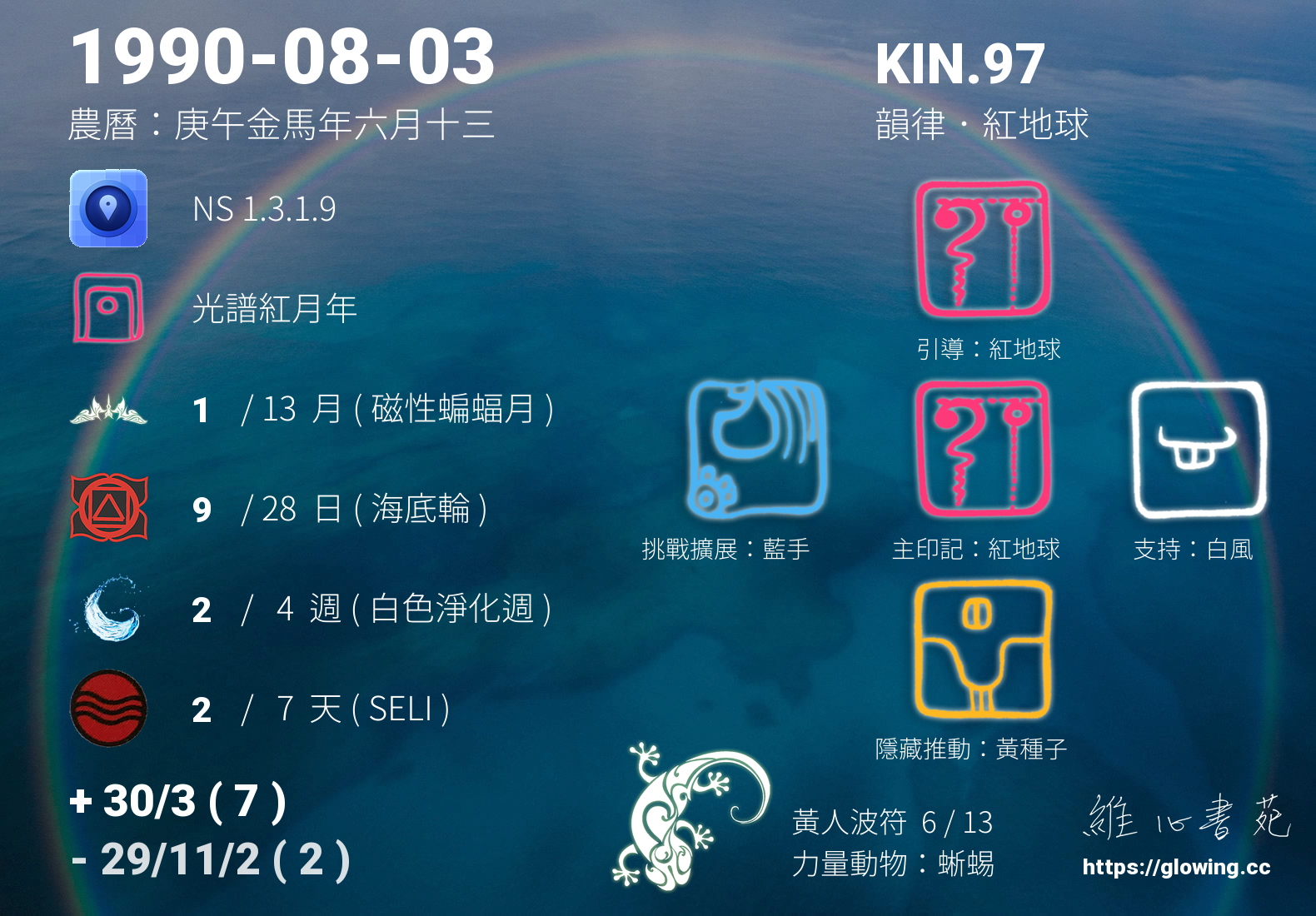 KIN.97 位於 黃人波符 13 天中的第 6 天,銀河音階為調性 6
