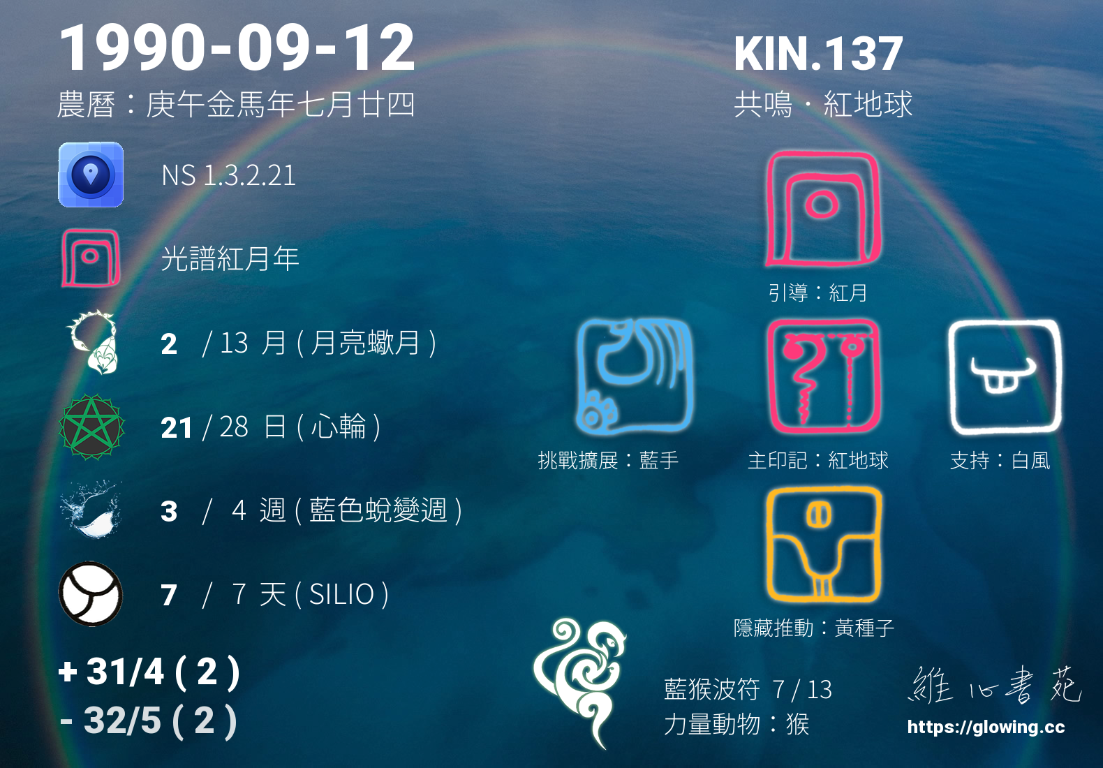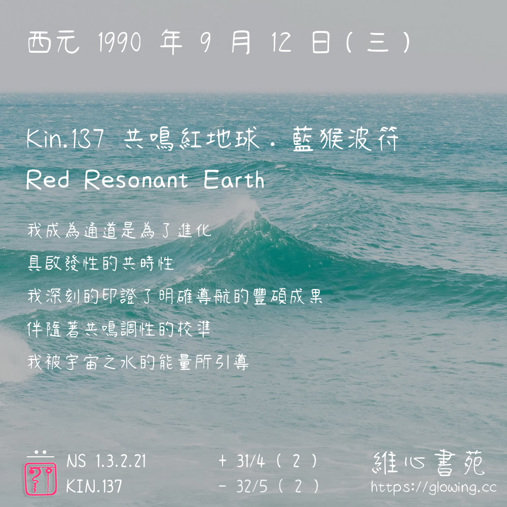 我們可以稱 KIN 137 為 【共鳴紅地球】 、 【共鳴的紅地球】 、 【藍猴波符 之 共鳴紅地球】 也可以是 【共鳴紅地球.藍猴波符】 ,你比較喜歡哪一個稱號呢?