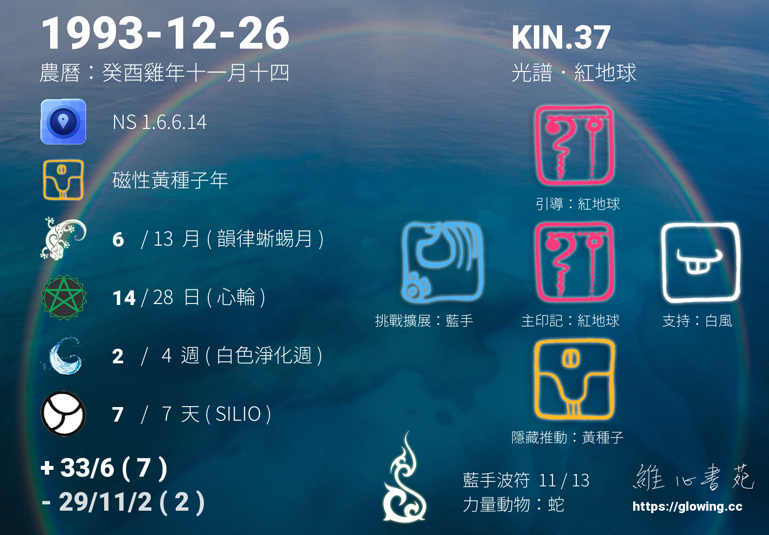 我們可以稱 KIN 37 為 【光譜紅地球】 、 【光譜的紅地球】 、 【藍手波符 之 光譜紅地球】 也可以是 【光譜紅地球.藍手波符】 ,你比較喜歡哪一個稱號呢?
