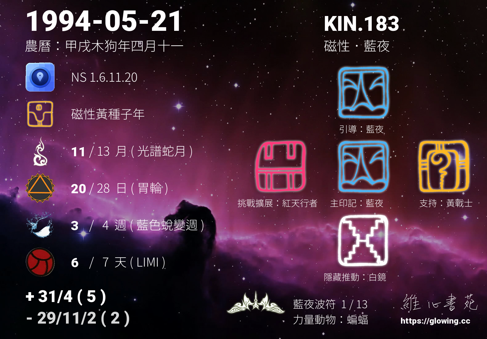 我們可以稱 KIN 183 為 【磁性藍夜】 、 【磁性的藍夜】 、 【藍夜波符 之 磁性藍夜】 也可以是 【磁性藍夜.藍夜波符】 ,你比較喜歡哪一個稱號呢?