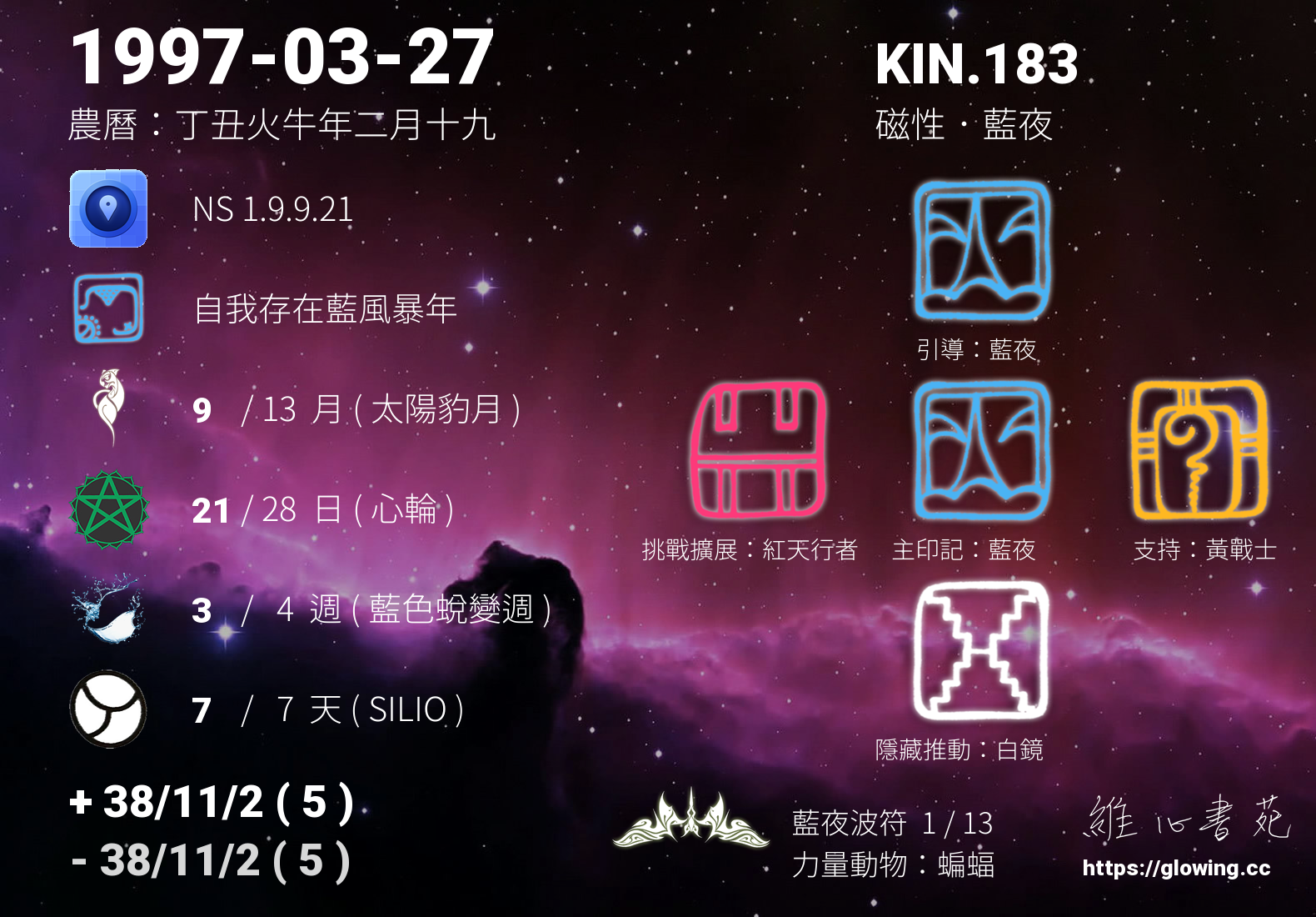 - PSI(行星記憶資料庫):KIN.183 磁性 藍夜