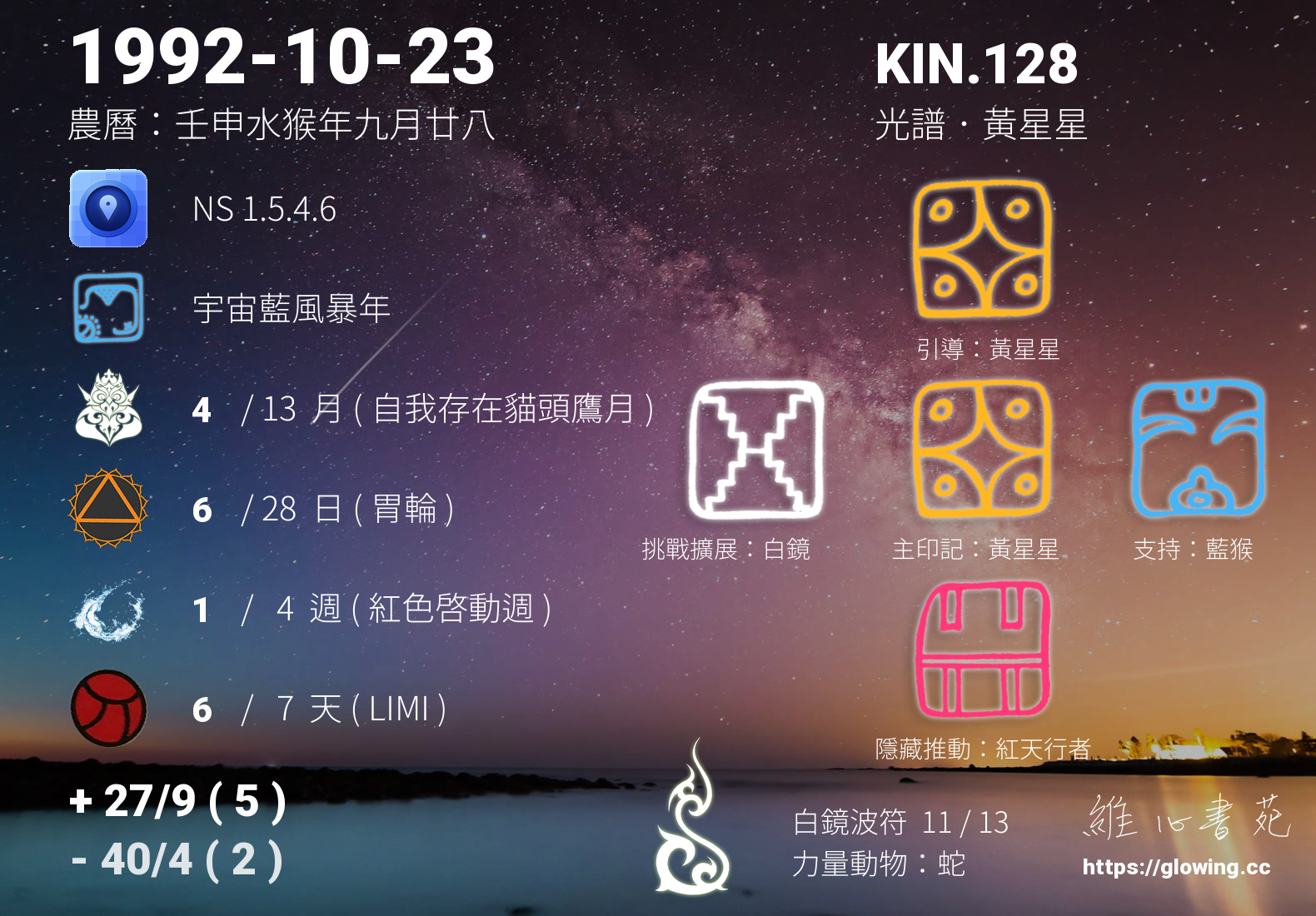 | 後天數/主命數 | 27/9(5) |
