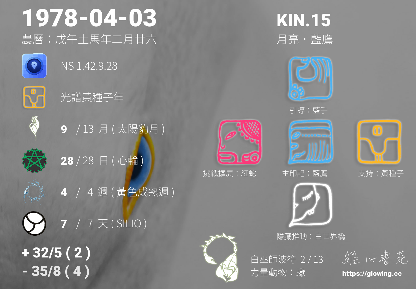 - PSI(行星記憶資料庫):KIN.155 水晶 藍鷹