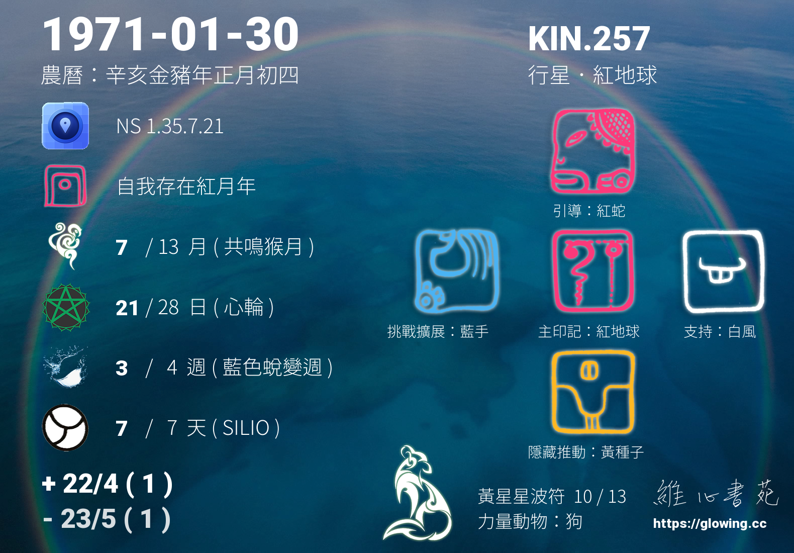 我們可以稱 KIN 257 為 【行星紅地球】 、 【行星的紅地球】 、 【黃星星波符 之 行星紅地球】 也可以是 【行星紅地球.黃星星波符】 ,你比較喜歡哪一個稱號呢?