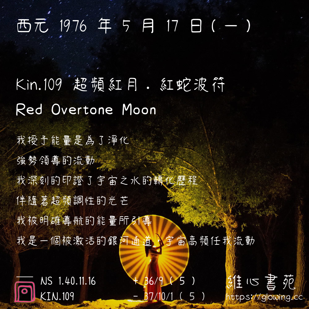 我們可以稱 KIN 109 為 【超頻紅月】 、 【超頻的紅月】 、 【紅蛇波符 之 超頻紅月】 也可以是 【超頻紅月.紅蛇波符】 ,你比較喜歡哪一個稱號呢?