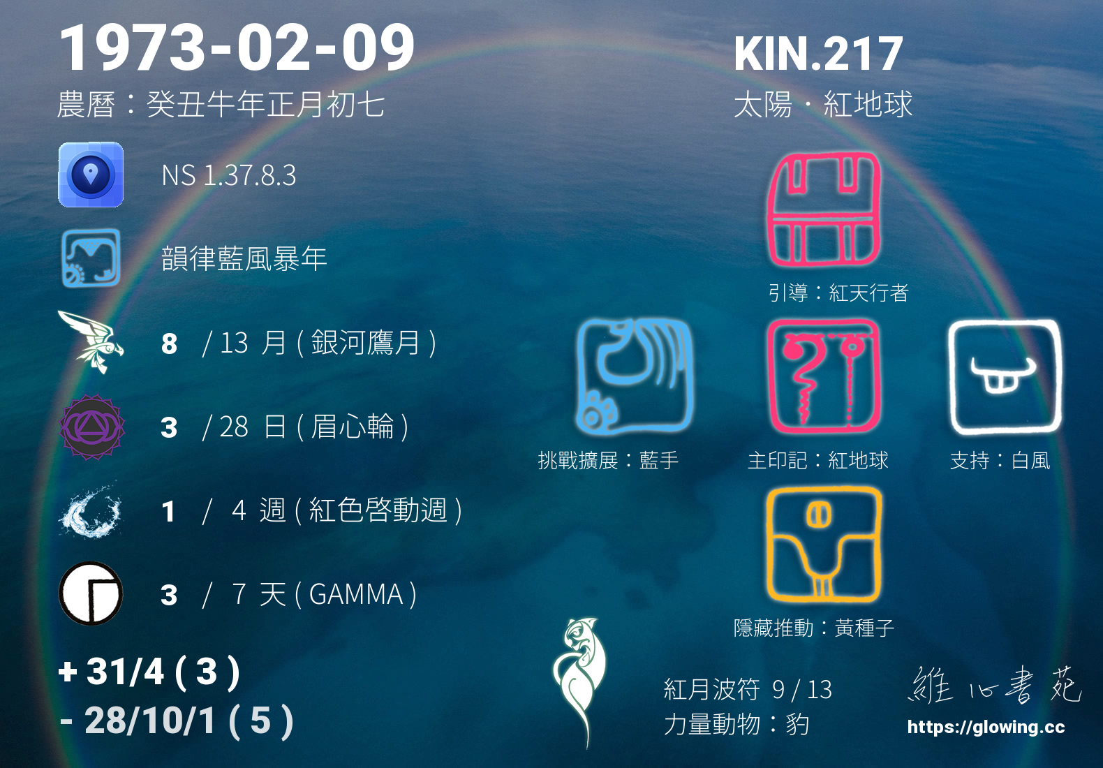 我們可以稱 KIN 217 為 【太陽紅地球】 、 【太陽的紅地球】 、 【紅月波符 之 太陽紅地球】 也可以是 【太陽紅地球.紅月波符】 ,你比較喜歡哪一個稱號呢?