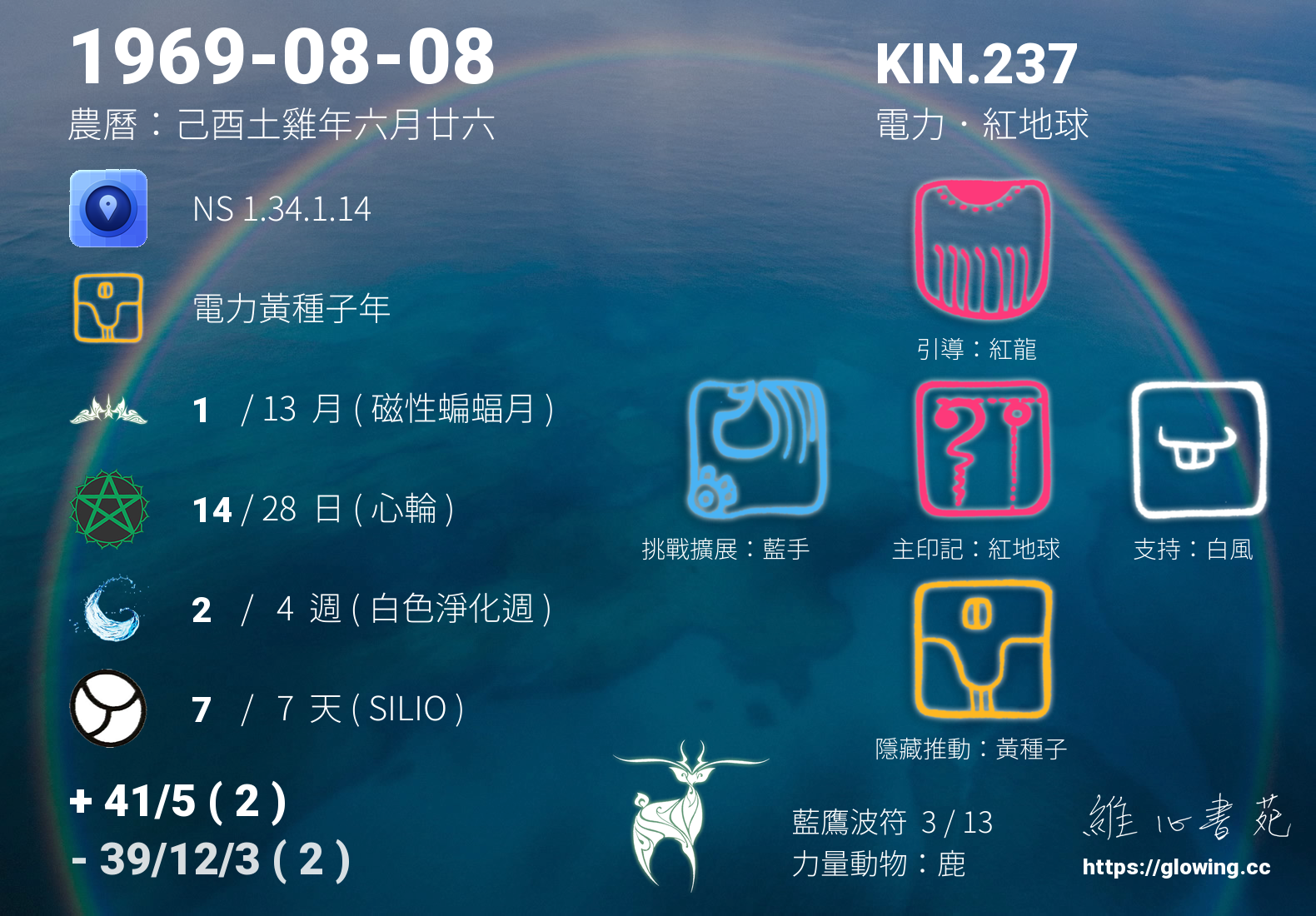 我們可以稱 KIN 237 為 【電力紅地球】 、 【電力的紅地球】 、 【藍鷹波符 之 電力紅地球】 也可以是 【電力紅地球.藍鷹波符】 ,你比較喜歡哪一個稱號呢?