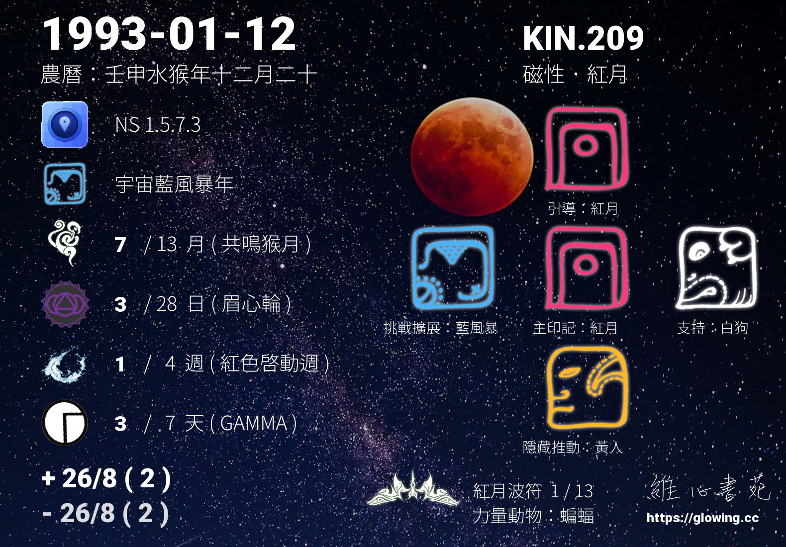 KIN.209 位於 紅月波符 13 天中的第 1 天,銀河音階為調性 1