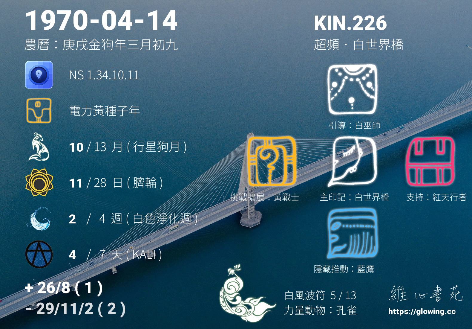 我們可以稱 KIN 226 為 【超頻白世界橋】 、 【超頻的白世界橋】 、 【白風波符 之 超頻白世界橋】 也可以是 【超頻白世界橋.白風波符】 ,你比較喜歡哪一個稱號呢?