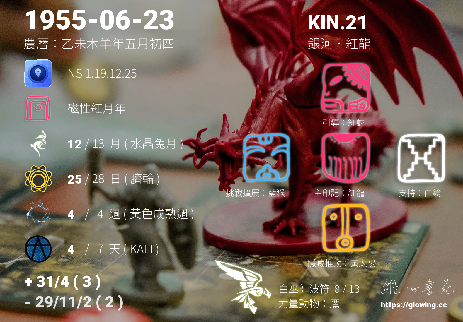 我們可以稱 KIN 21 為 【銀河紅龍】 、 【銀河的紅龍】 、 【白巫師波符 之 銀河紅龍】 也可以是 【銀河紅龍.白巫師波符】 ,你比較喜歡哪一個稱號呢?