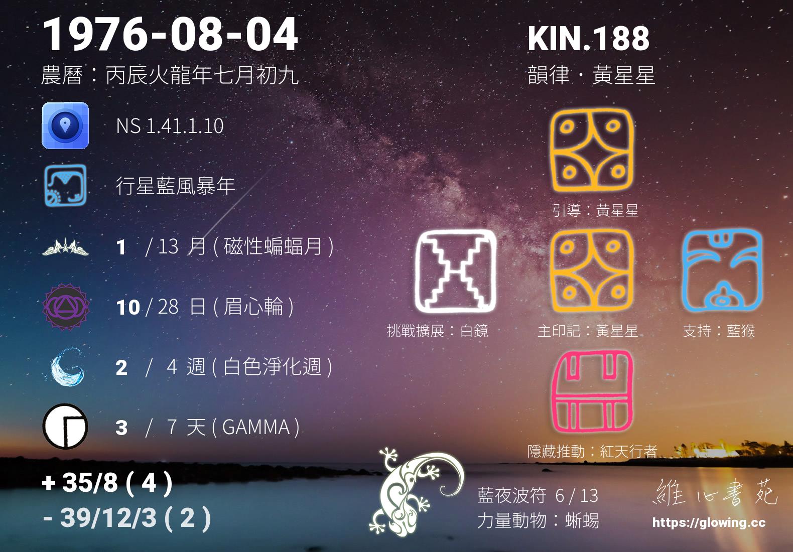 KIN.188 位於 藍夜波符 13 天中的第 6 天,銀河音階為調性 6