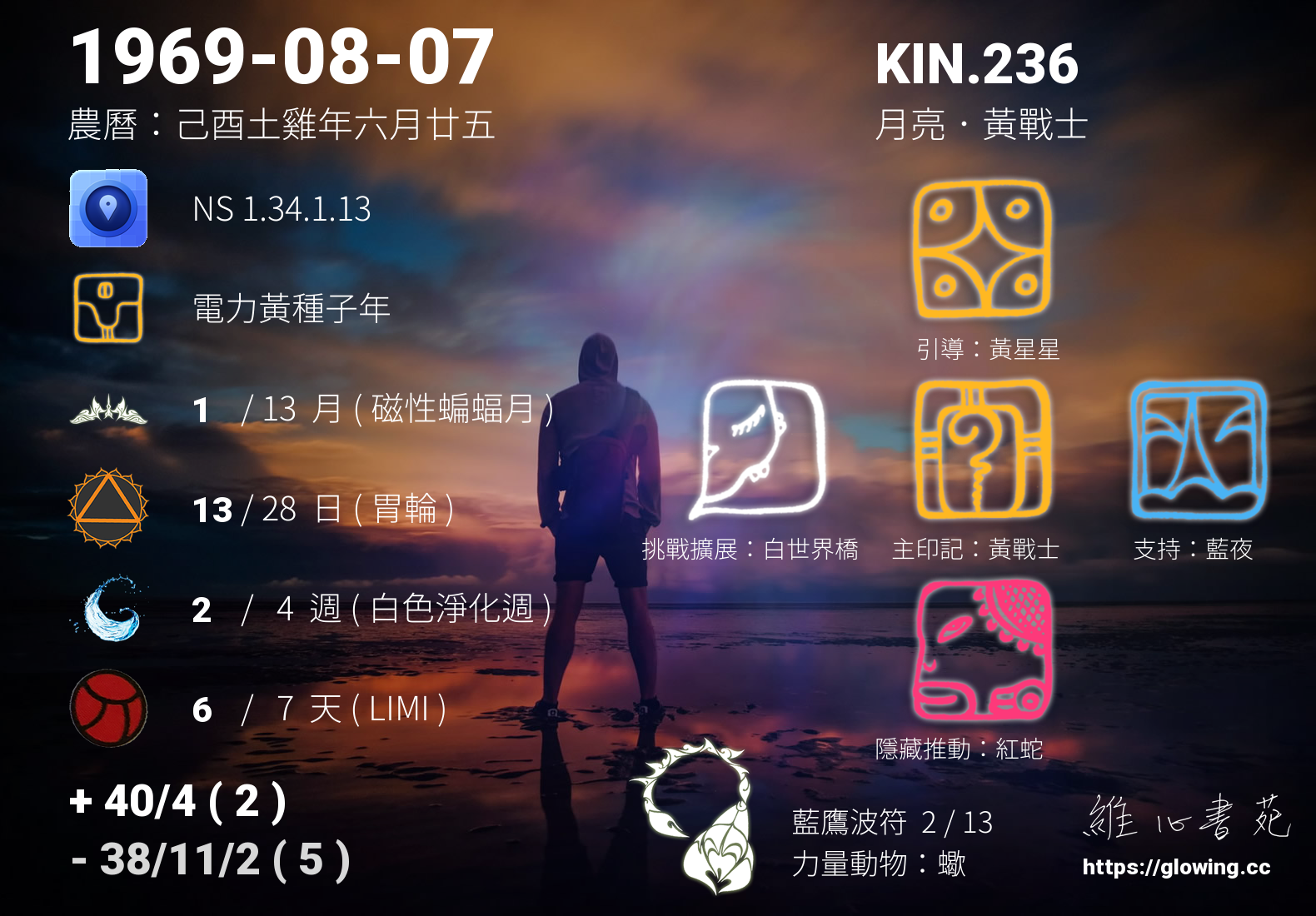 我們可以稱 KIN 236 為 【月亮黃戰士】 、 【月亮的黃戰士】 、 【藍鷹波符 之 月亮黃戰士】 也可以是 【月亮黃戰士.藍鷹波符】 ,你比較喜歡哪一個稱號呢?