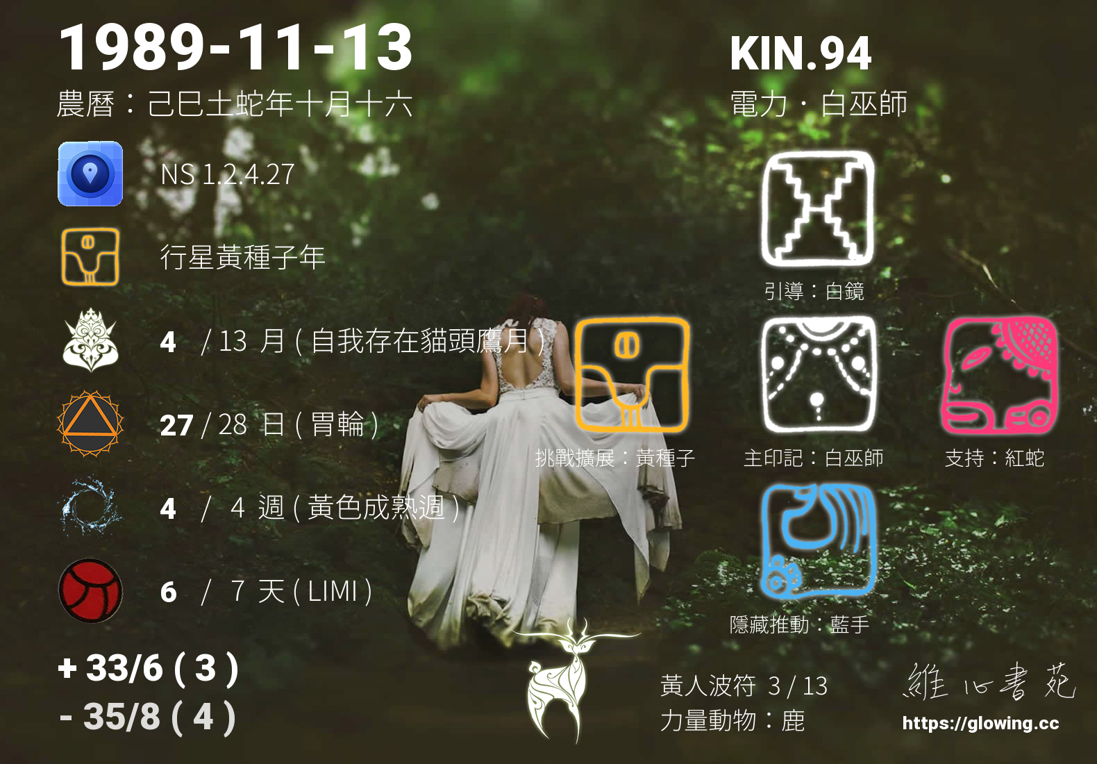 我們可以稱 KIN 94 為 【電力白巫師】 、 【電力的白巫師】 、 【黃人波符 之 電力白巫師】 也可以是 【電力白巫師.黃人波符】 ,你比較喜歡哪一個稱號呢?