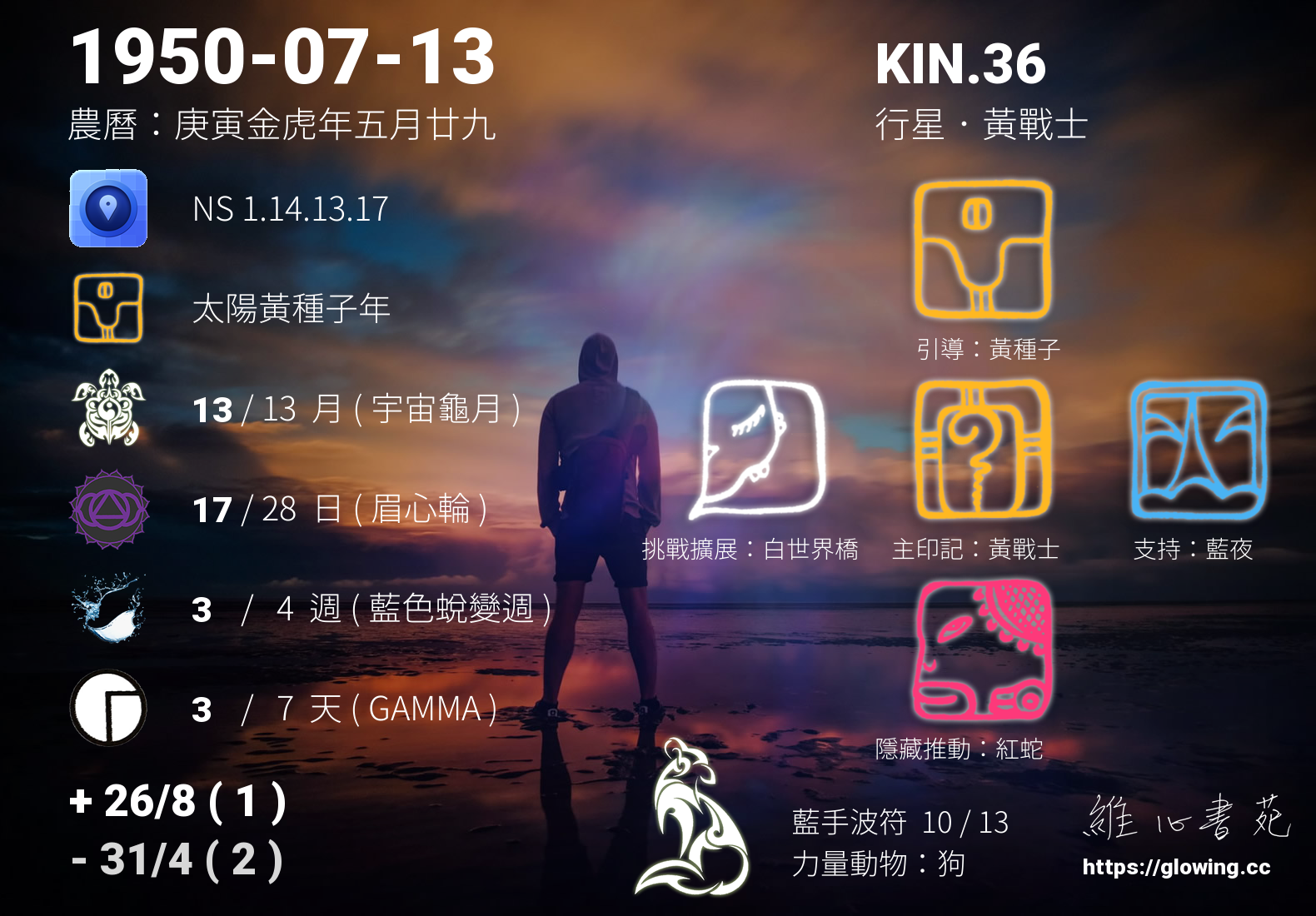 我們可以稱 KIN 36 為 【行星黃戰士】 、 【行星的黃戰士】 、 【藍手波符 之 行星黃戰士】 也可以是 【行星黃戰士.藍手波符】 ,你比較喜歡哪一個稱號呢?