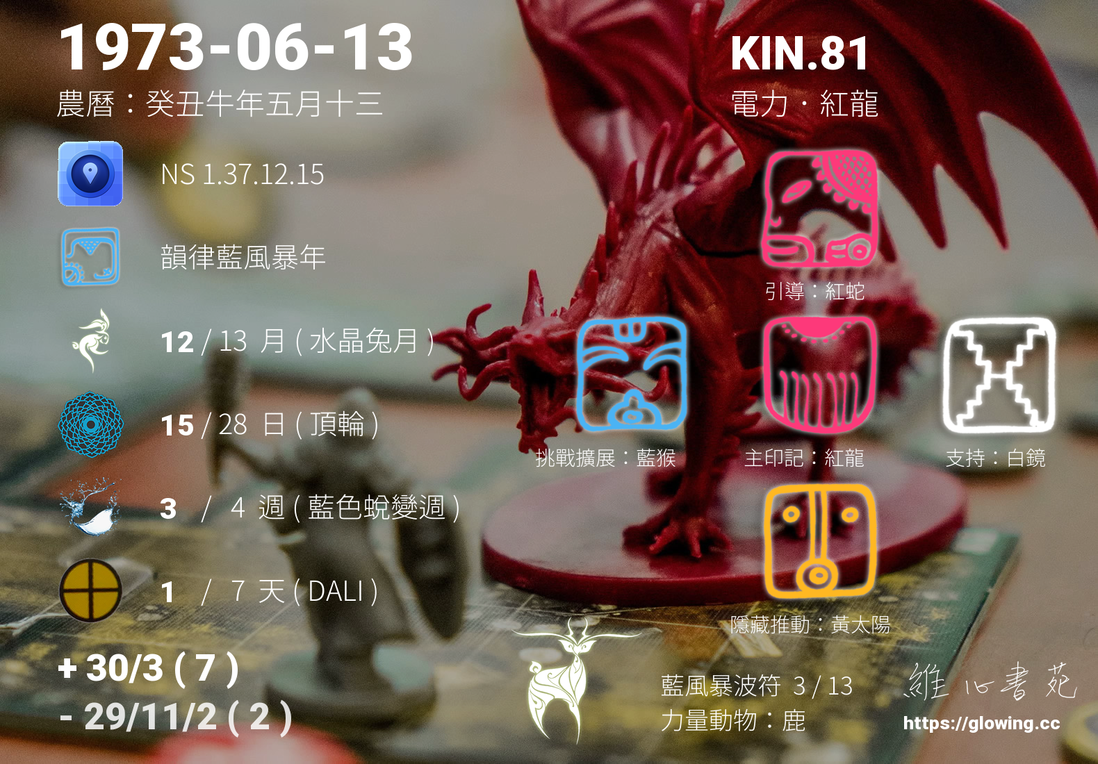 我們可以稱 KIN 81 為 【電力紅龍】 、 【電力的紅龍】 、 【藍風暴波符 之 電力紅龍】 也可以是 【電力紅龍.藍風暴波符】 ,你比較喜歡哪一個稱號呢?