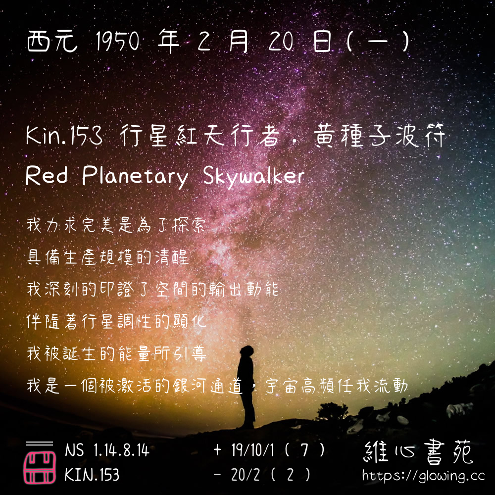 我們可以稱 KIN 153 為 【行星紅天行者】 、 【行星的紅天行者】 、 【黃種子波符 之 行星紅天行者】 也可以是 【行星紅天行者.黃種子波符】 ,你比較喜歡哪一個稱號呢?