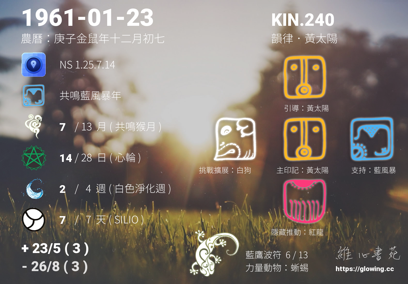 我們可以稱 KIN 240 為 【韻律黃太陽】 、 【韻律的黃太陽】 、 【藍鷹波符 之 韻律黃太陽】 也可以是 【韻律黃太陽.藍鷹波符】 ,你比較喜歡哪一個稱號呢?