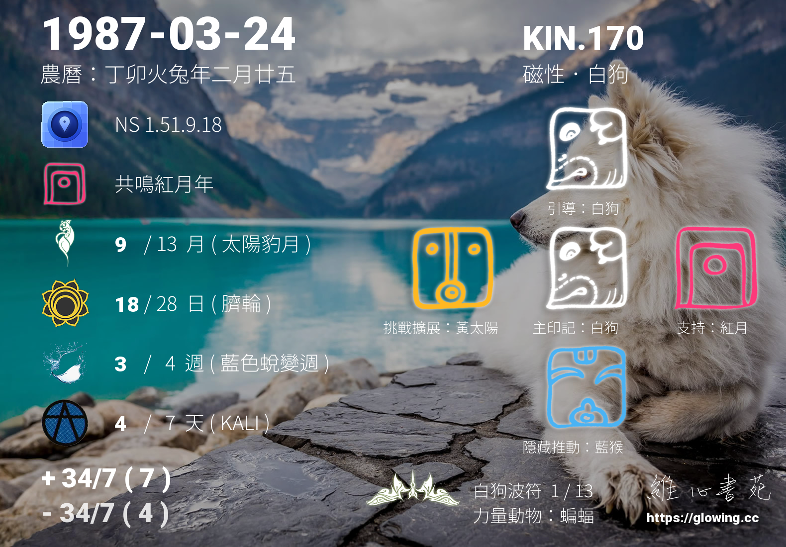 我們可以稱 KIN 170 為 【磁性白狗】 、 【磁性的白狗】 、 【白狗波符 之 磁性白狗】 也可以是 【磁性白狗.白狗波符】 ,你比較喜歡哪一個稱號呢?
